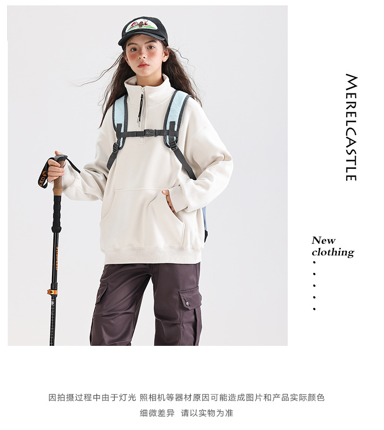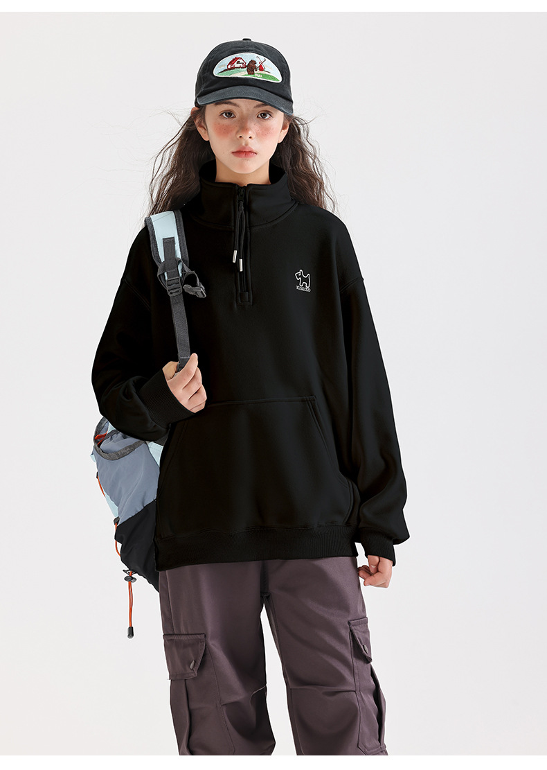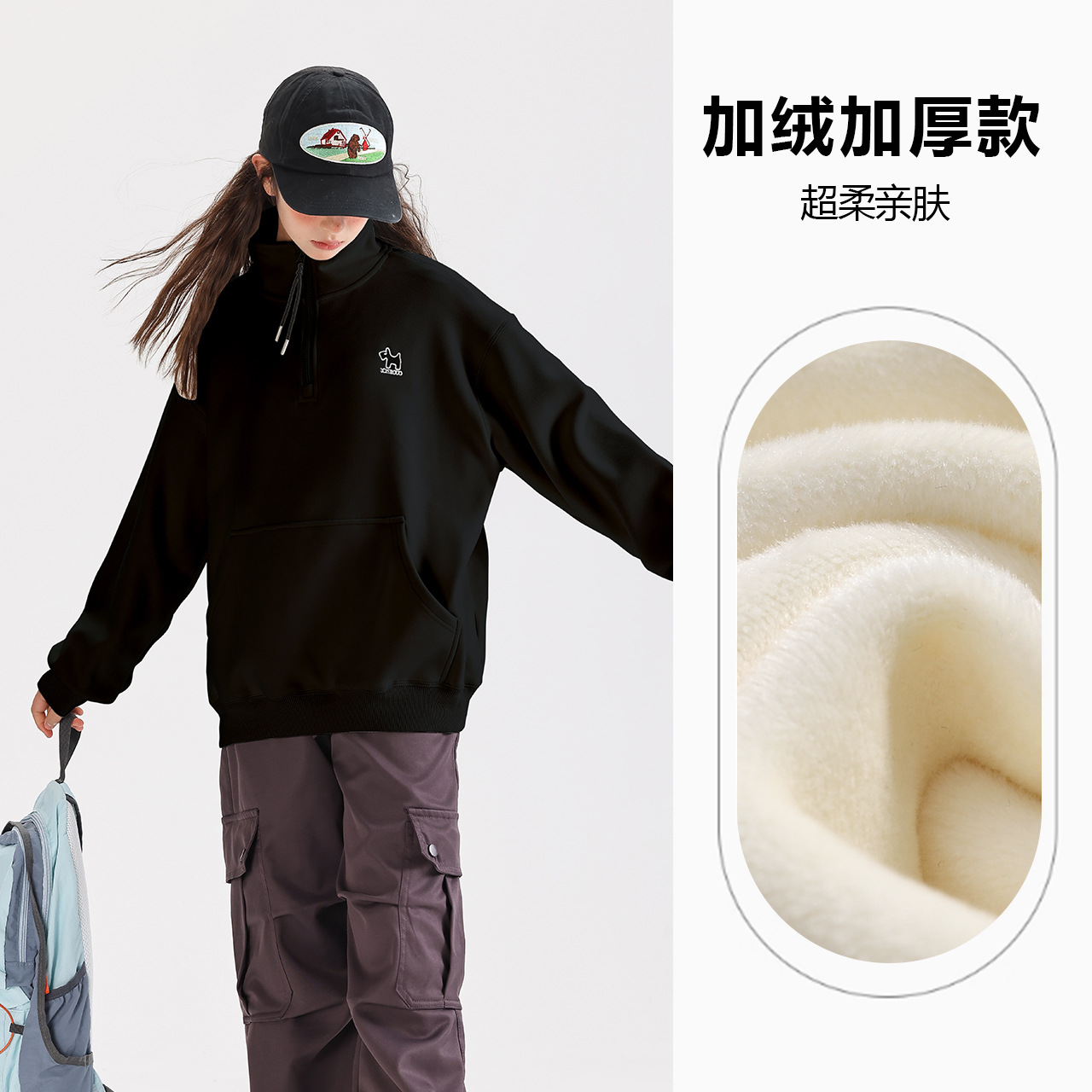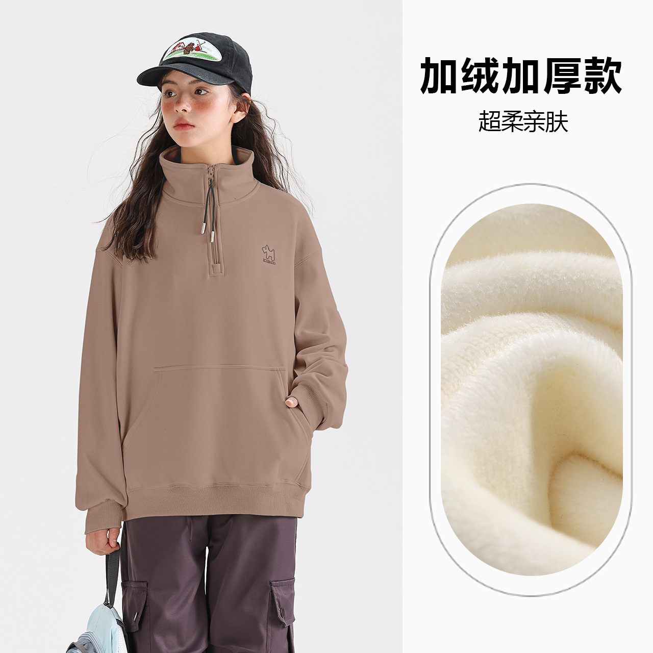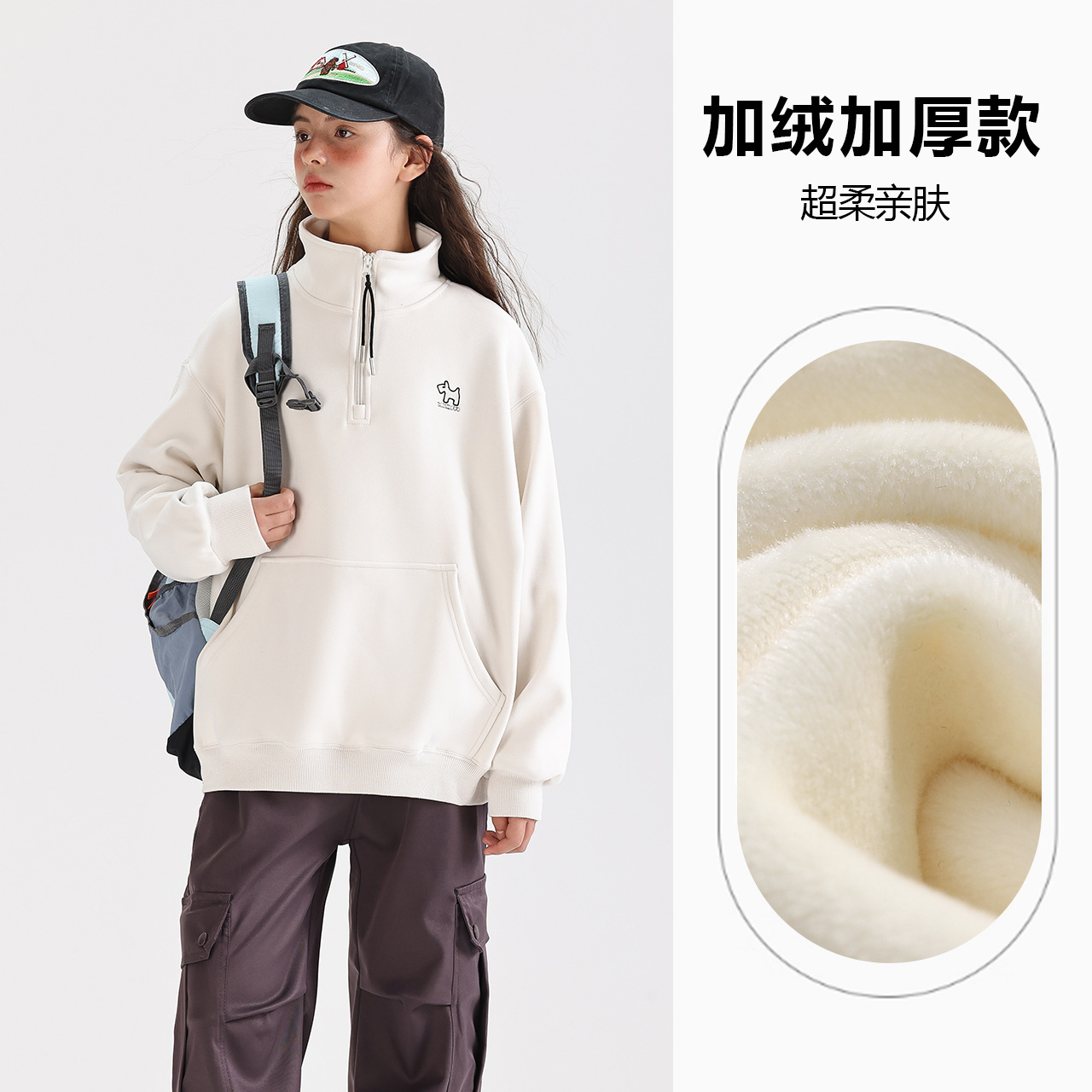 여자 스웨트 2024 중학교 학생을위한 새 여자 기모 반 지퍼 옷 겨울 원피스 벨벳 하이 칼라 탑스토어 가기