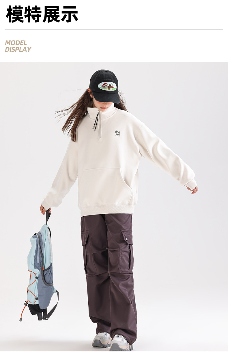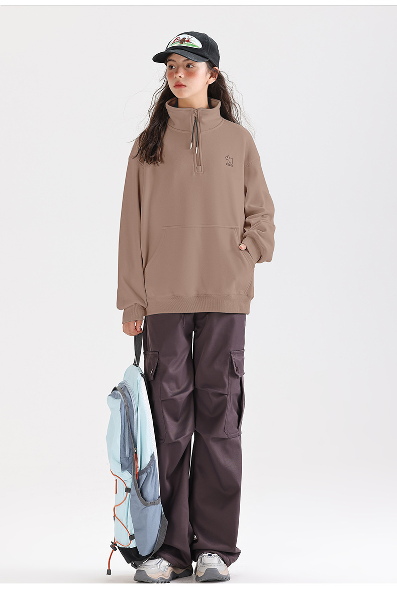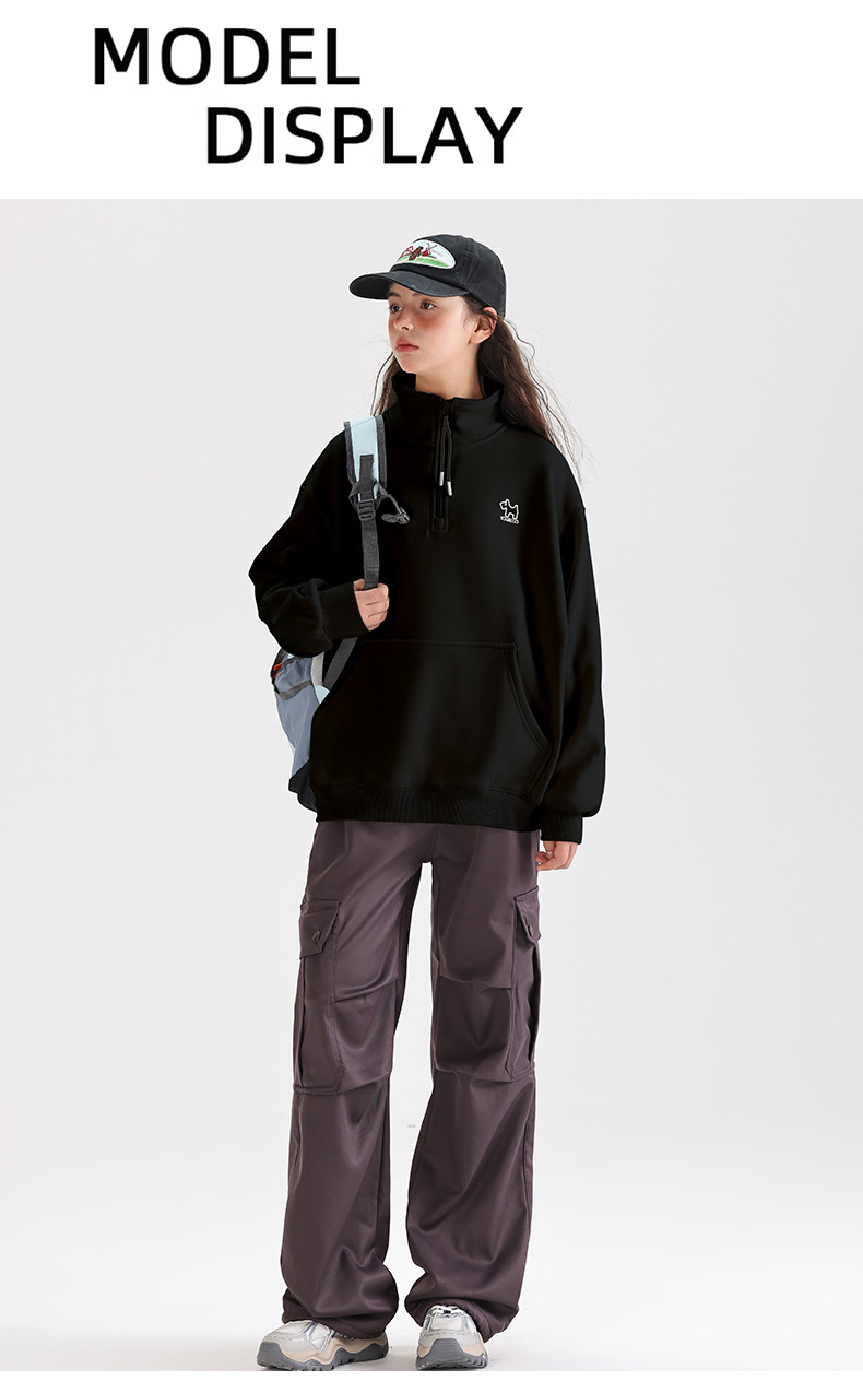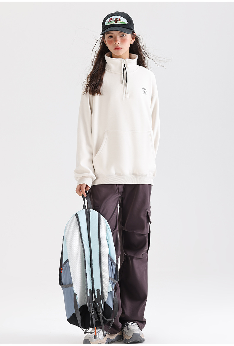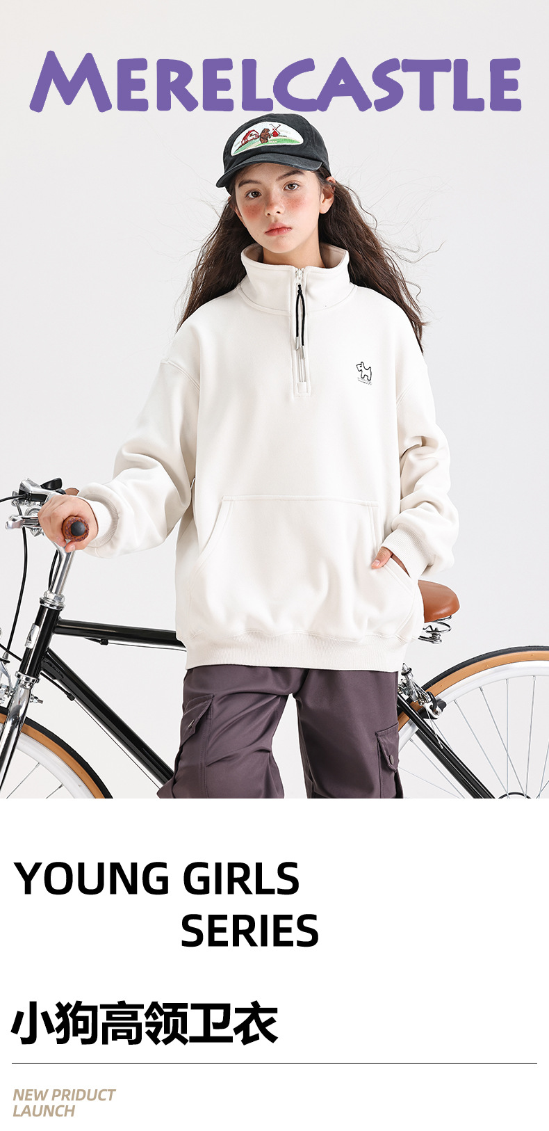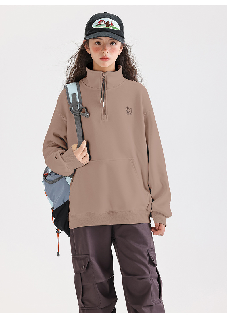 여자 스웨트 2024 중학교 학생을위한 새 여자 기모 반 지퍼 옷 겨울 원피스 벨벳 하이 칼라 탑스토어 가기