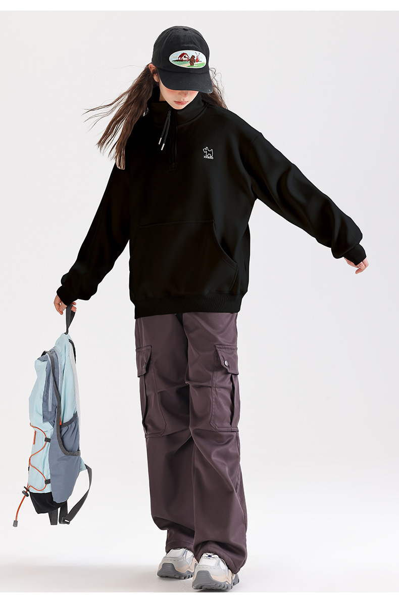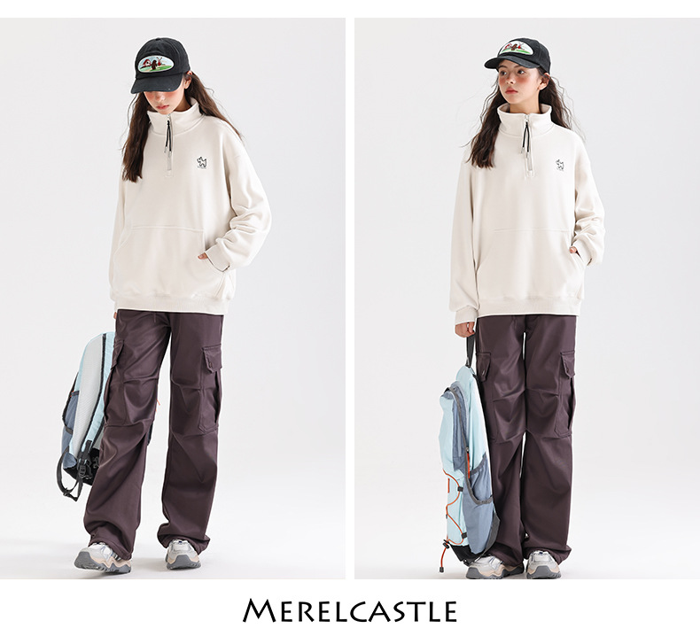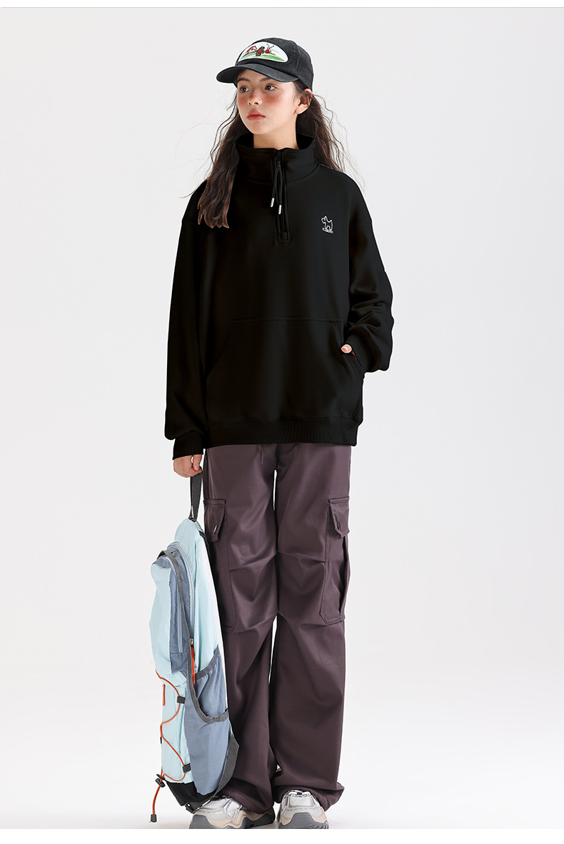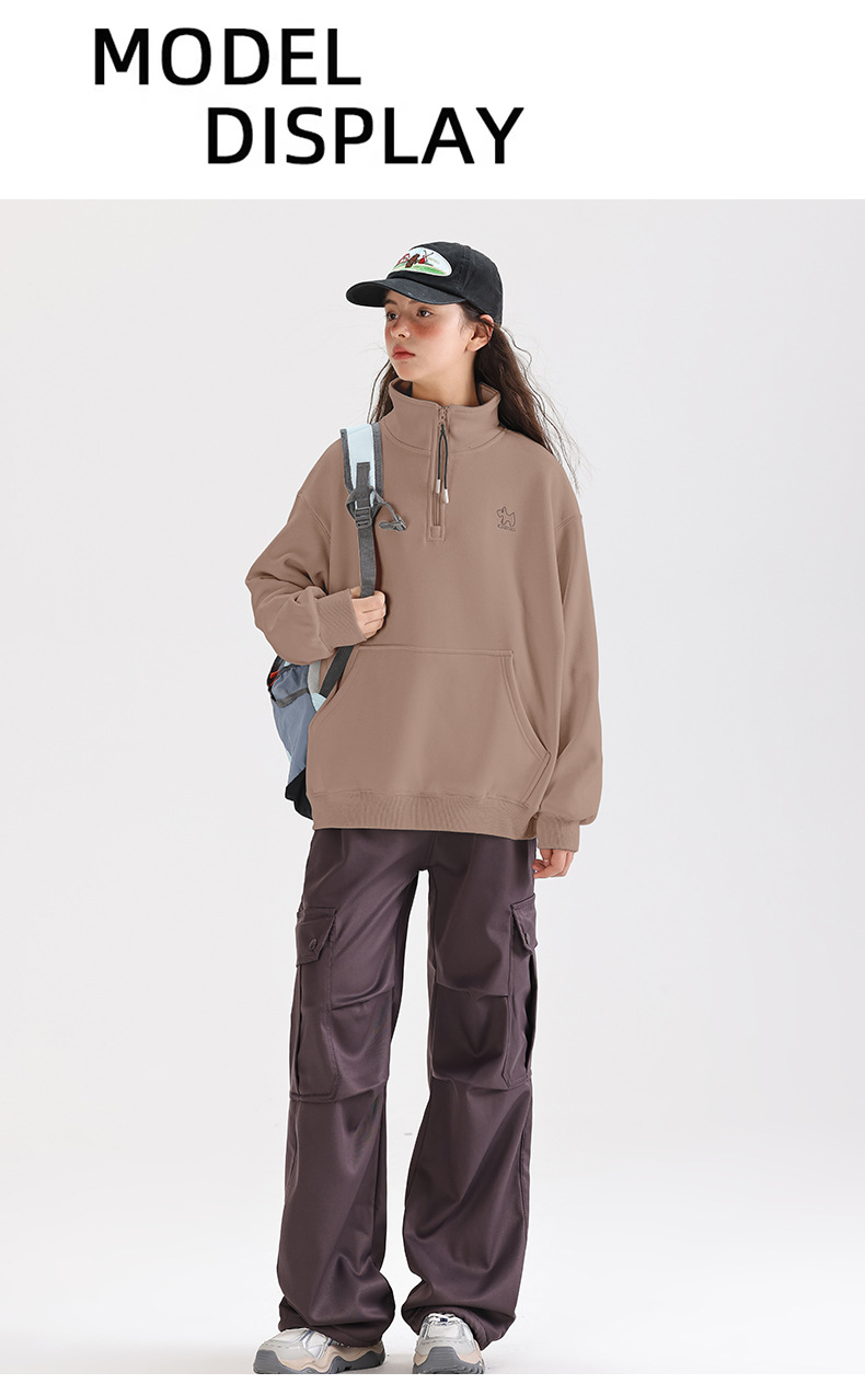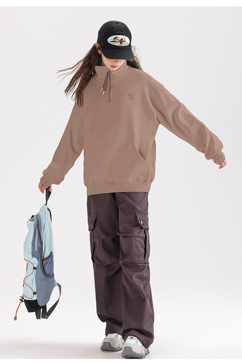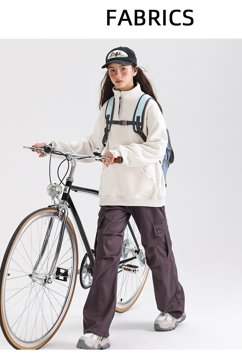 여자 스웨트 2024 중학교 학생을위한 새 여자 기모 반 지퍼 옷 겨울 원피스 벨벳 하이 칼라 탑스토어 가기