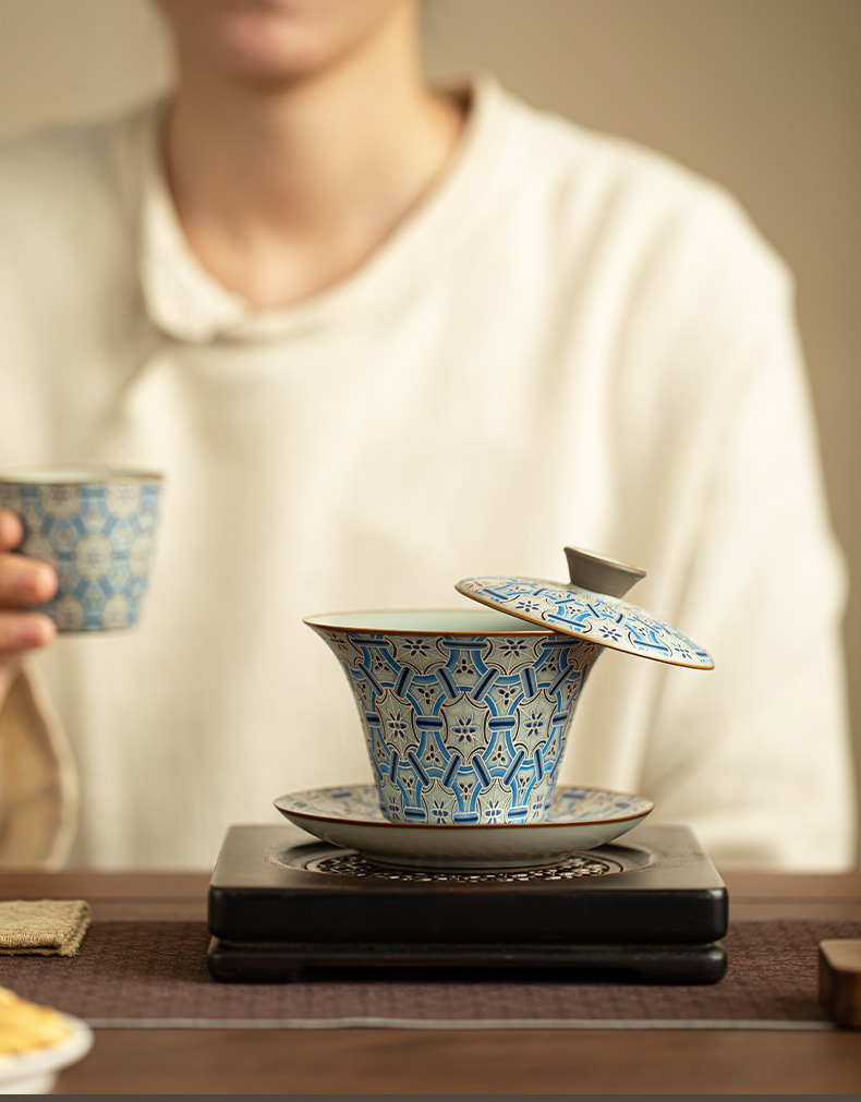Jingdezhen Blue와 Flower Sicai 커버 그릇 세라믹 티 세트 말굽 커버 보울이 아닌 뜨거운 티 보울이 조각을 열 수 있습니다스토어 가기