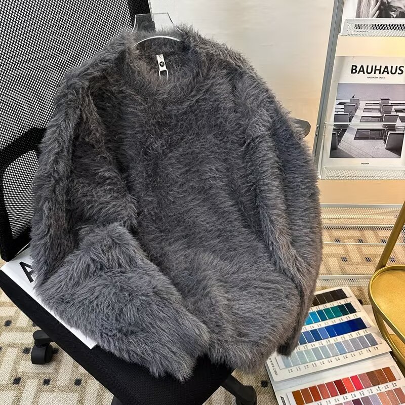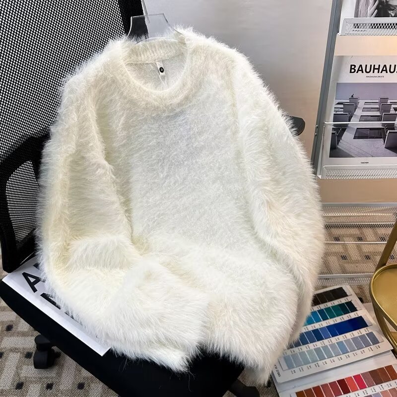 2024 가을과 겨울 단색 밍크 벨벳 긴팔 스웨터 남성과 여성의 부드러운 밀랍 bf 스타일 스웨터 커플 스웨터