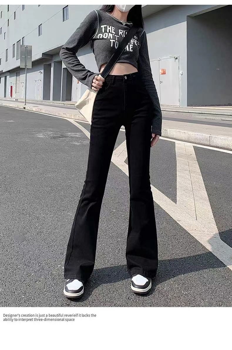 좁은 버전 마이크로 블레 청바지 여성의 가을과 겨울 작은 슬림 블랙 라이트 컬러 바지 높은 허리 말굽 플레어 바지스토어 가기