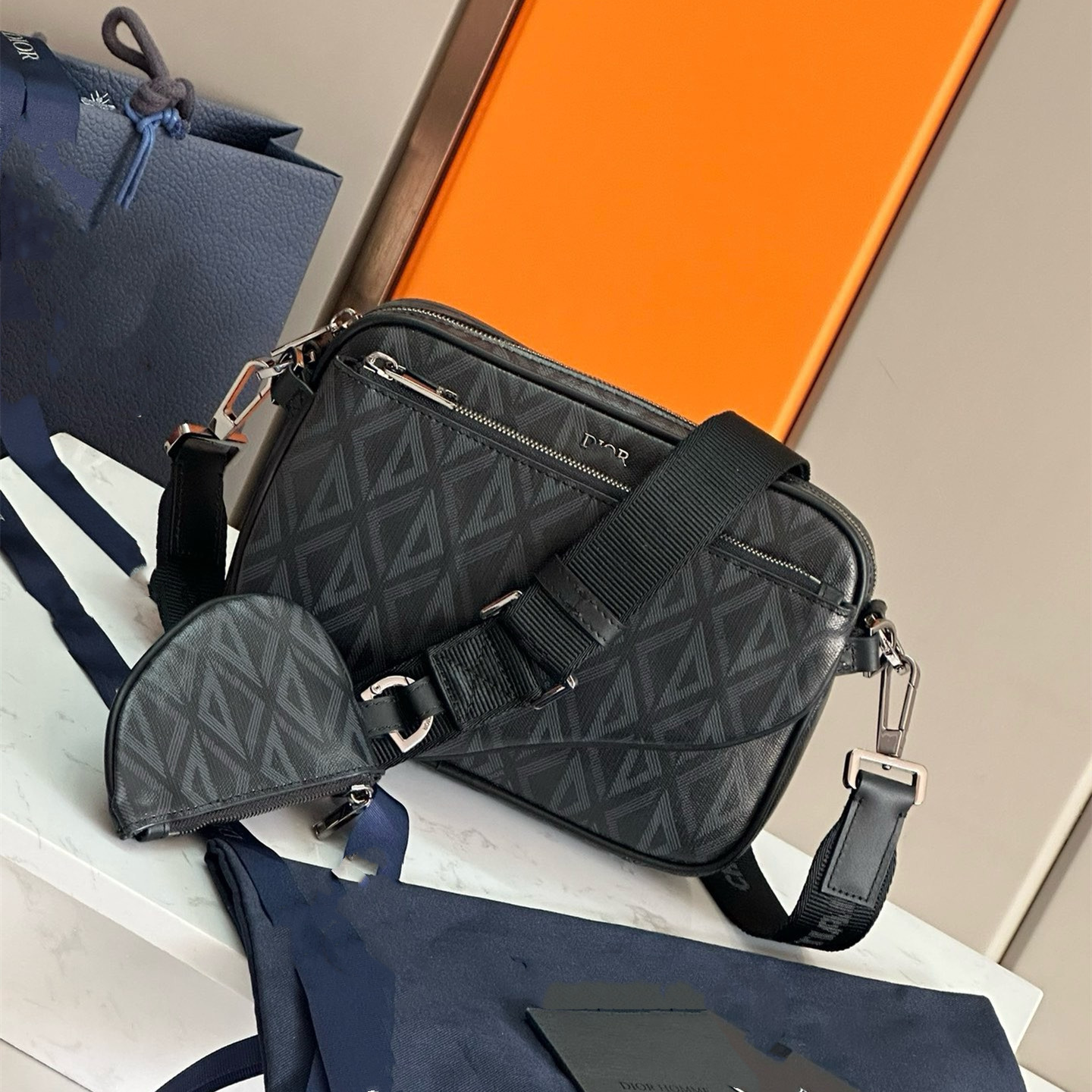 새로운 스타일 유행 사진 가방 캐주얼 카우보이 남성 어깨 가방 안장 3 피스 세트 정품 가죽 고품질 질감 크로스 바디 백스토어 가기