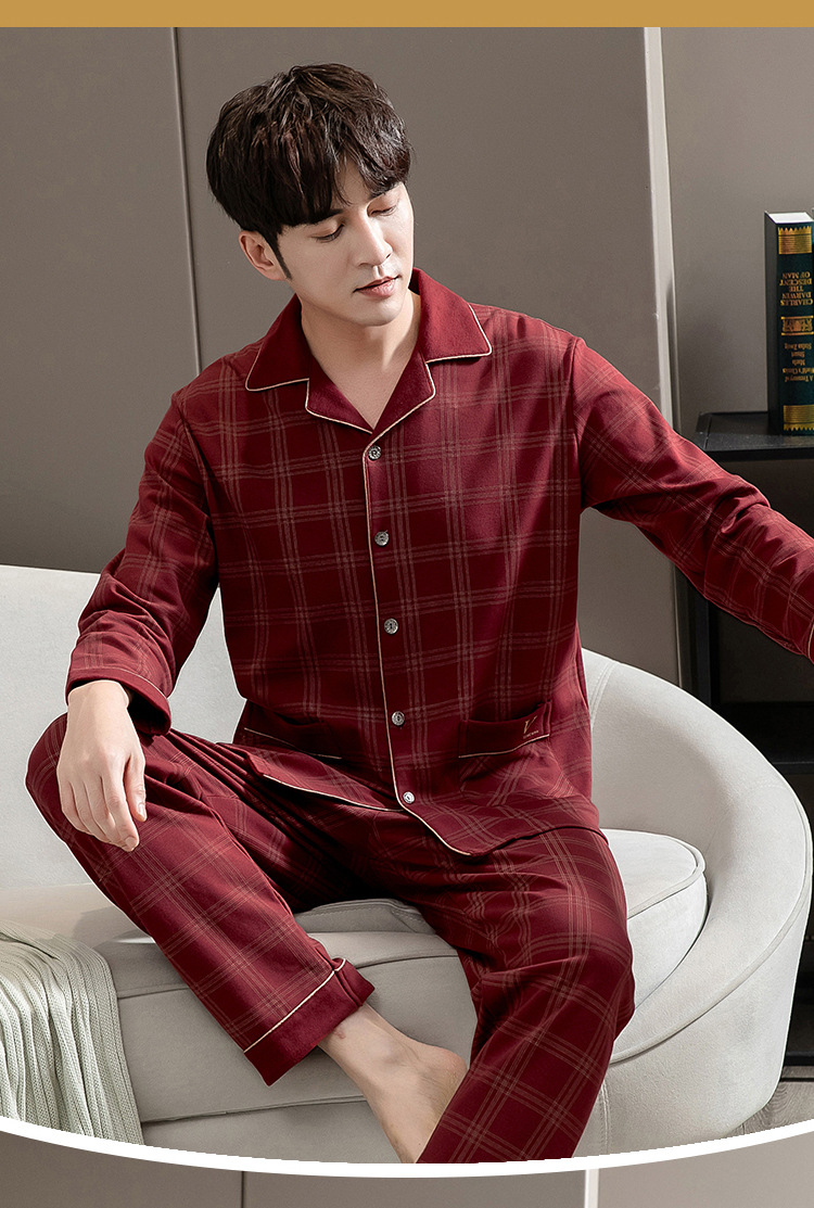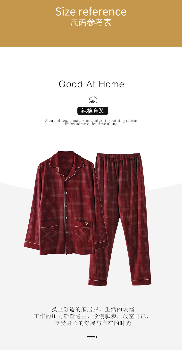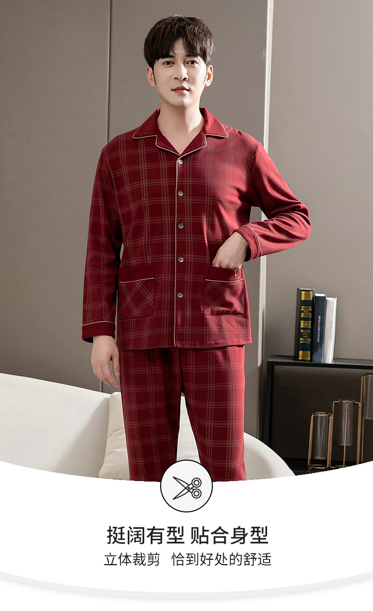 붉은 남자 잠옷 봄과 가을면 긴팔 카디건 올해 홈 의류 남자 아버지 세트 겨울 240kg스토어 가기