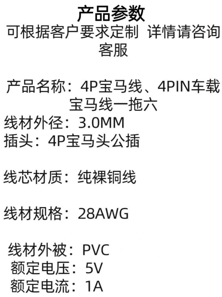 35mm 스테레오 오디오 케이블 4P BMW 헤드 PH2.0 4 코어 케이블 1 드래그 6 자신의 공장 재고스토어 가기