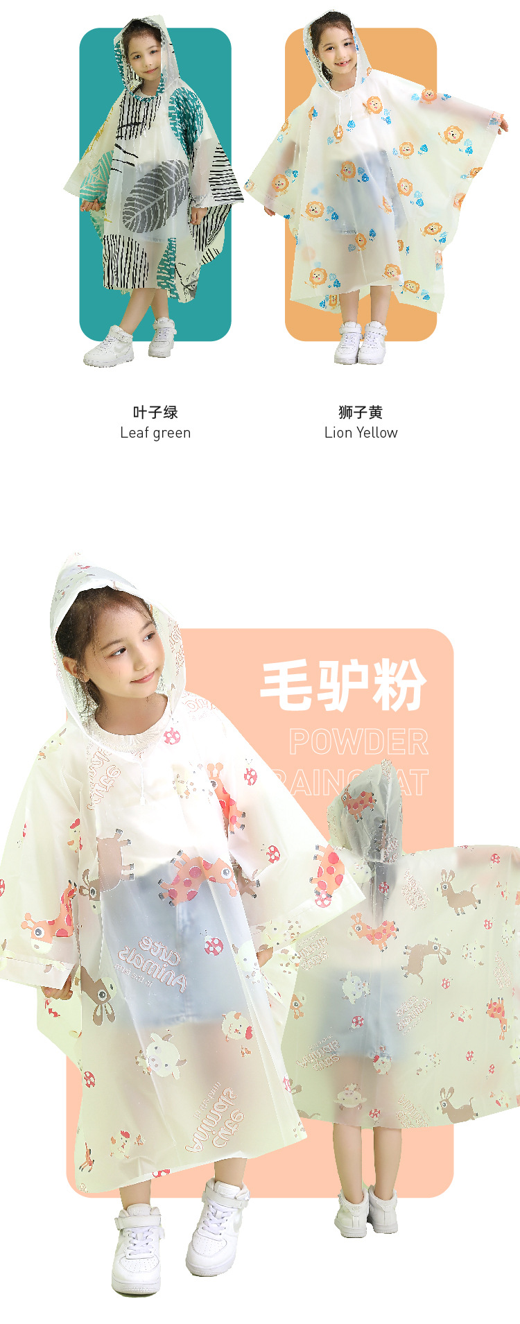 리 왕 어린이 패션 윈드 브레이커 비옷 EVA 캔디 컬러 풀 플레이트 인쇄 케이프 비옷