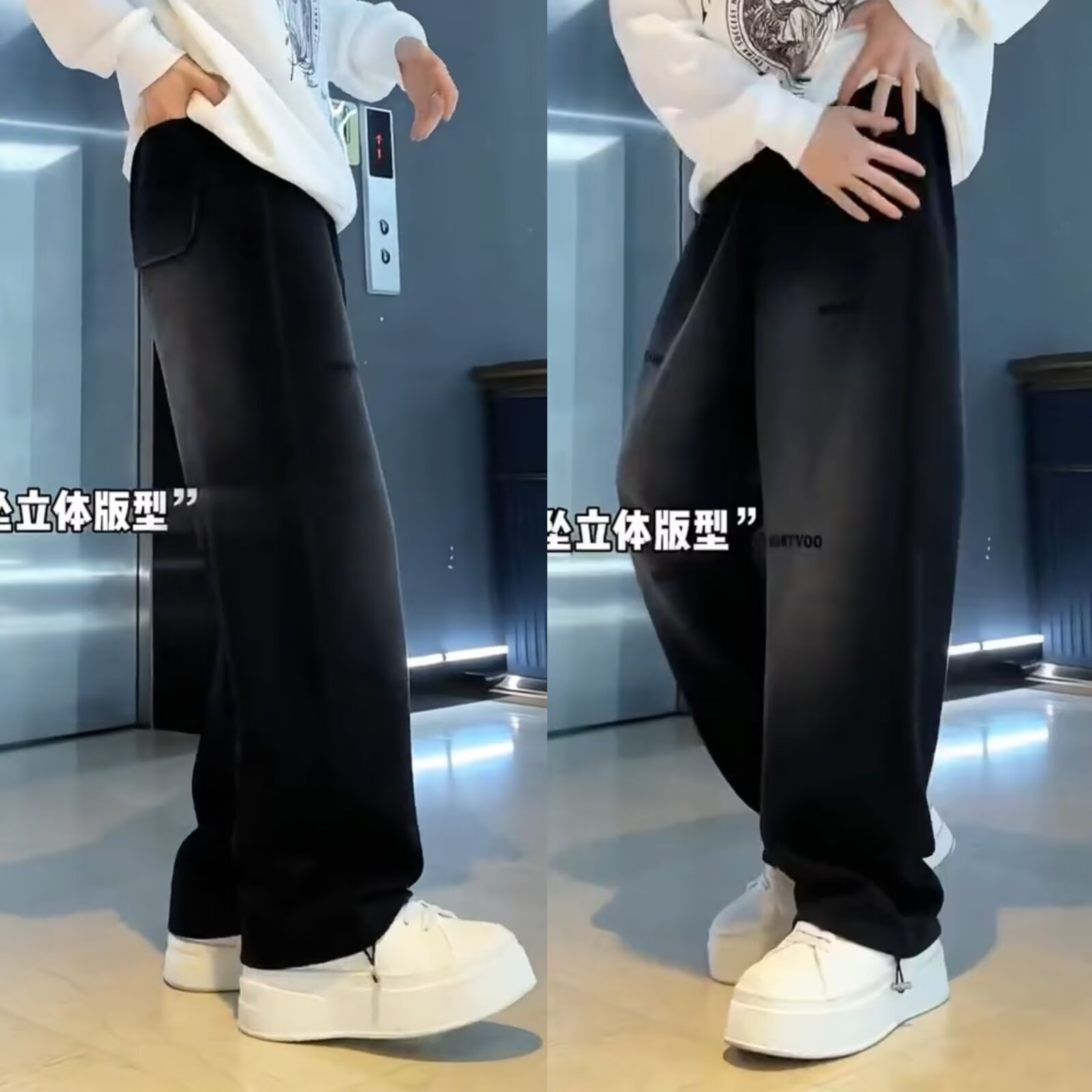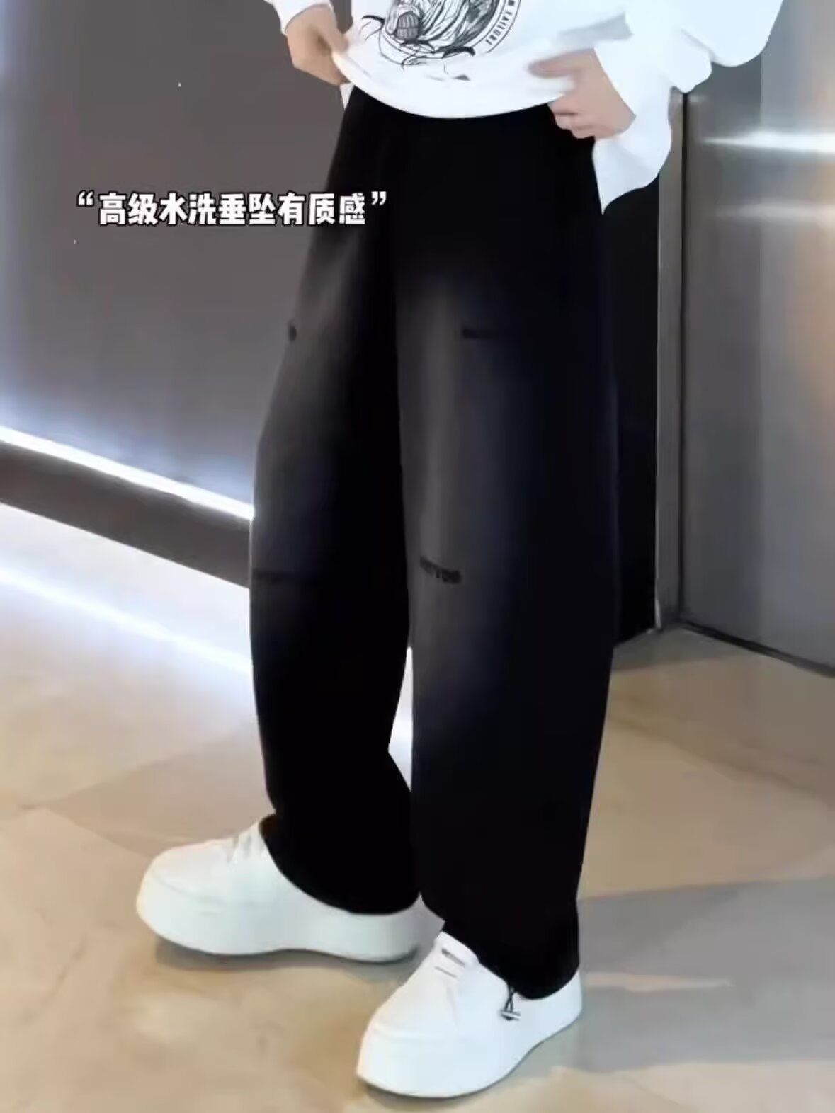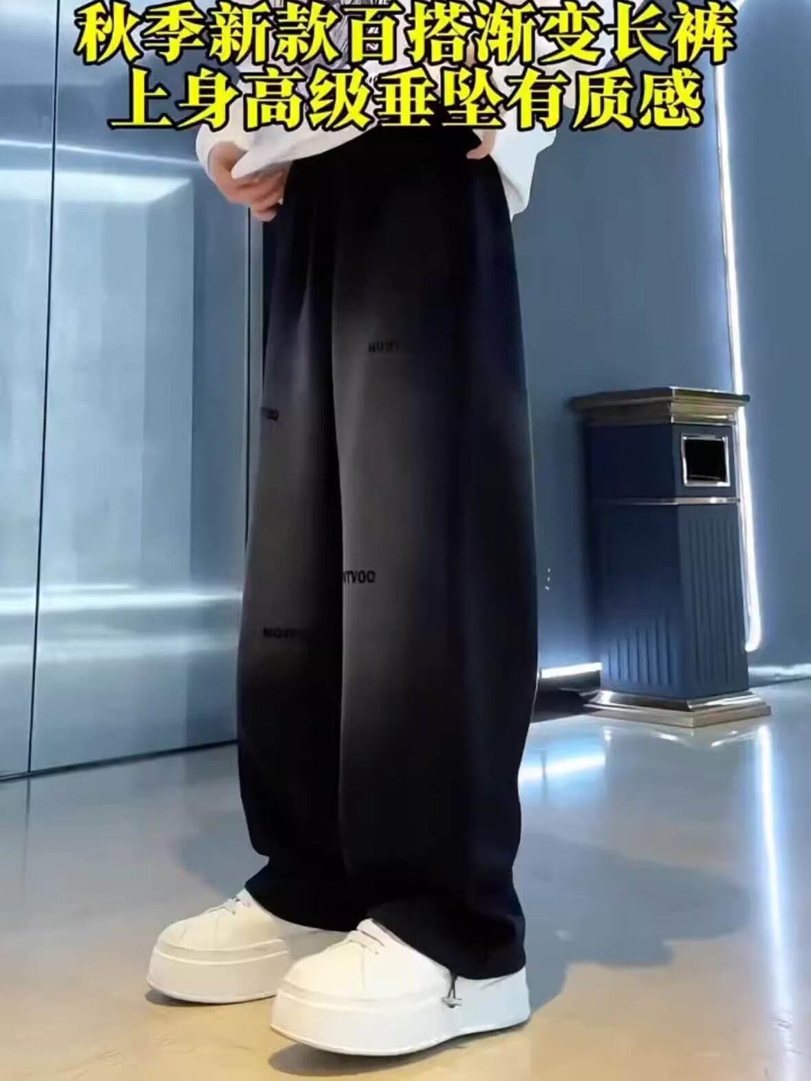 가을 남자의 새로운 그라디언트 세척 면화 스트레이트-다리 스포츠 바지 유행 올매치 느슨한 통기성 와이드 다리 캐주얼 바지