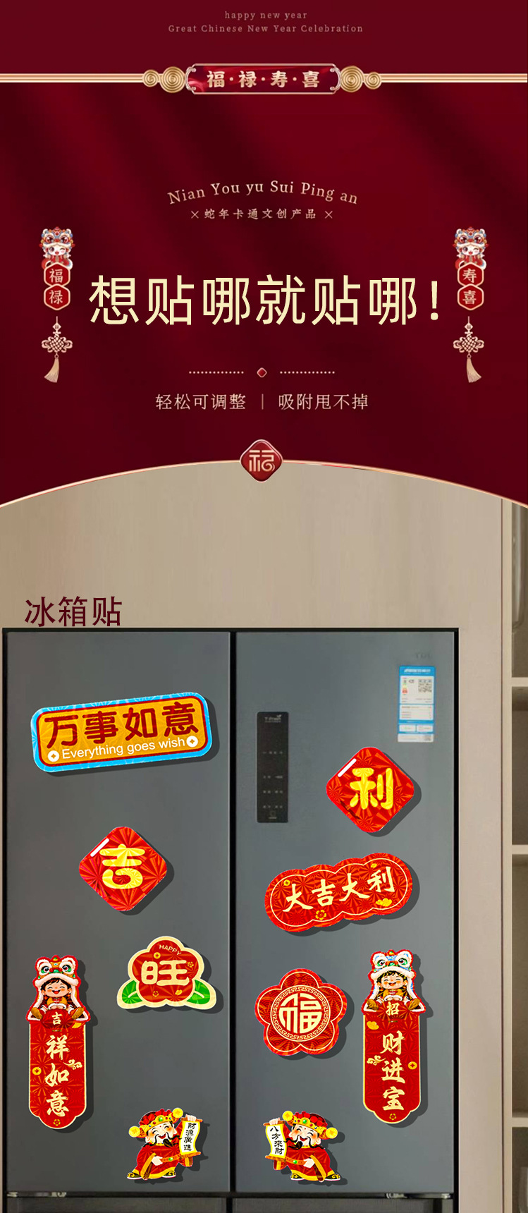 2025 새로운 도어 스티커 나노 자기 냉장고 도어 스티커 창조적 인 행운의 장식 새해 장식 봄 축제 용품스토어 가기