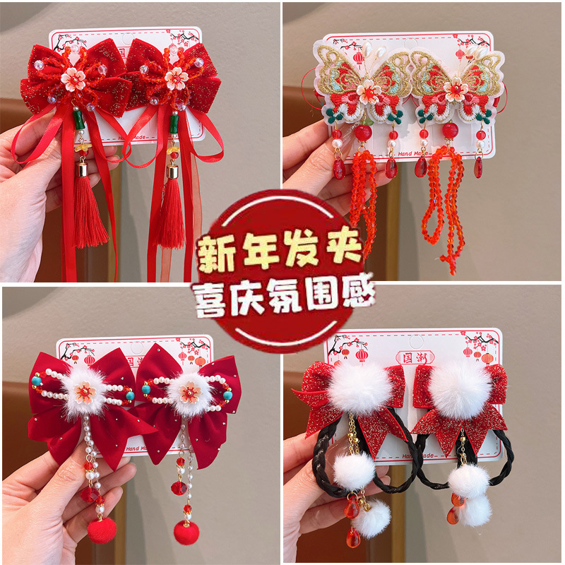 새해 빨간 머리핀 어린이 골동품 헤어 액세서리 구정 중국 스타일 소녀 한푸 액세서리 헤어핀 아기의 머리 장식스토어 가기