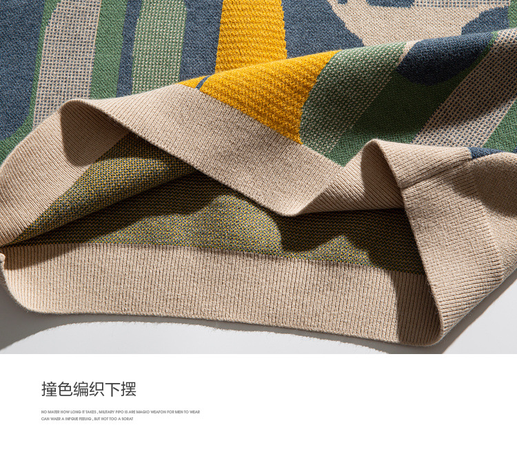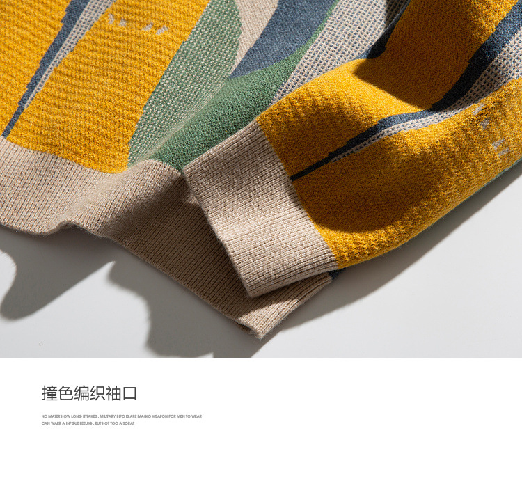 원래 수제 일본 패션 브랜드 창조적 인 고양이 패턴 크루 넥 스웨터 남자 가을 느슨한 탑 니트 셔츠 학생