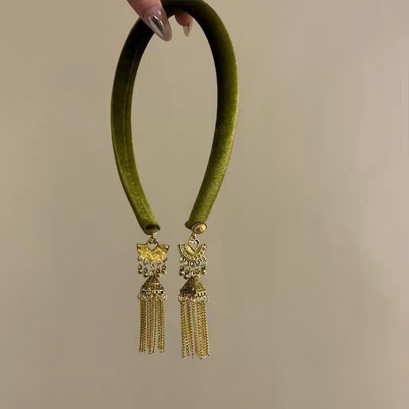가을과 겨울 레트로 새로운 중국 술 벨벳 헤어 밴드 가짜 귀걸이 하이 엔드 센스 헤드 밴드 민족 스타일 헤어 액세서리 헤어 클립