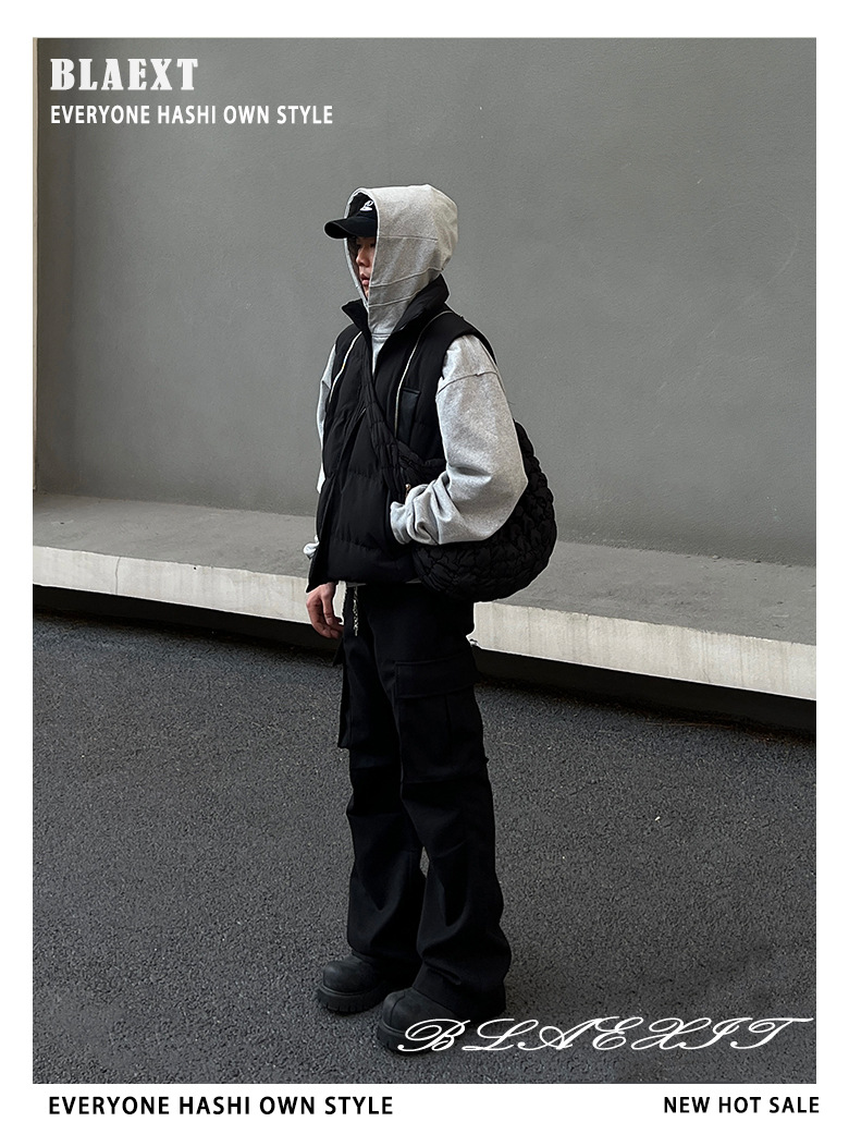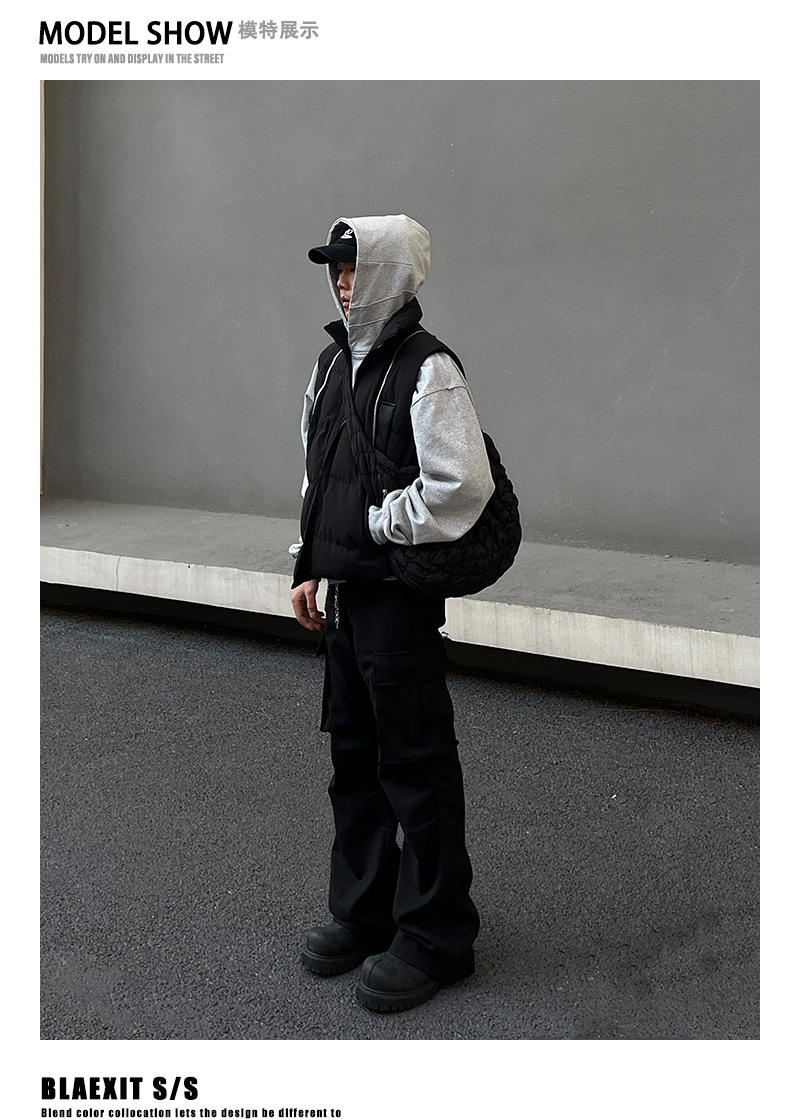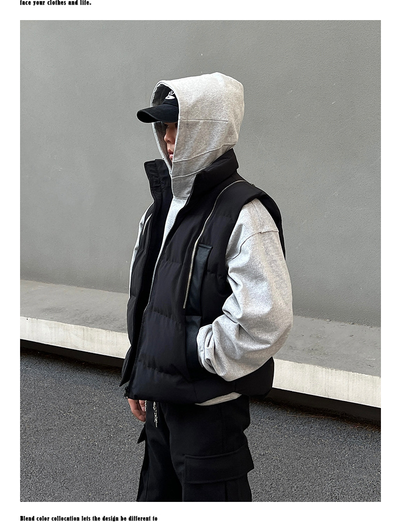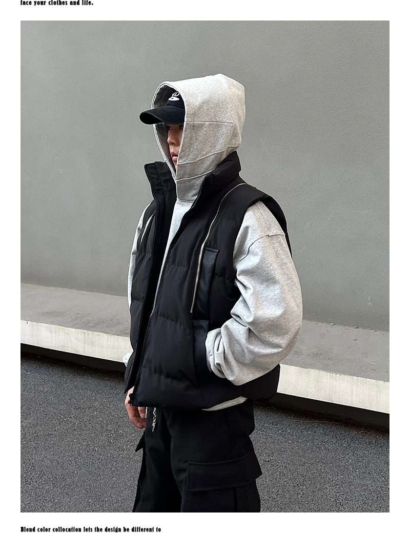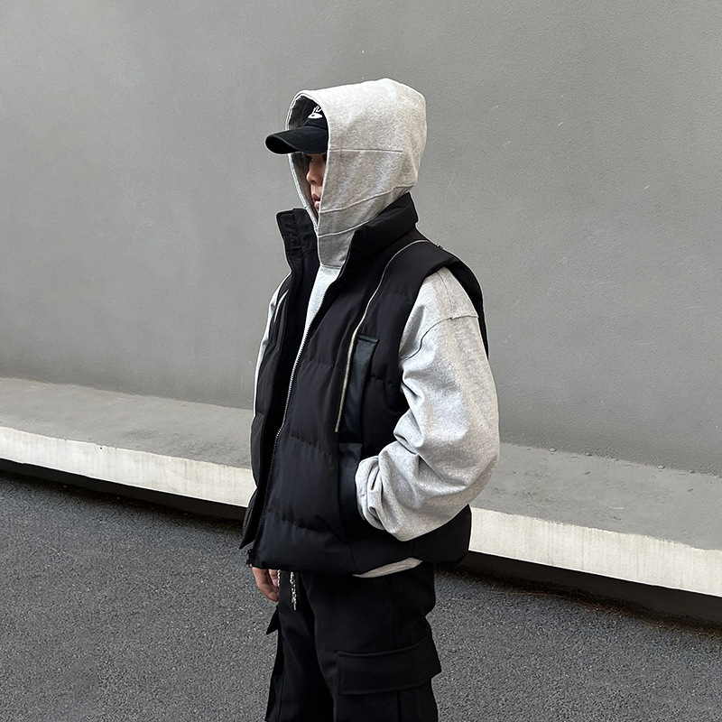 2024 새로운 해체 된 멀티 지퍼 프로필 조끼 면화 패딩 재킷 오버레이 가을 및 겨울 하이 엔드 클린 핏 Chop Shoulder Jacket