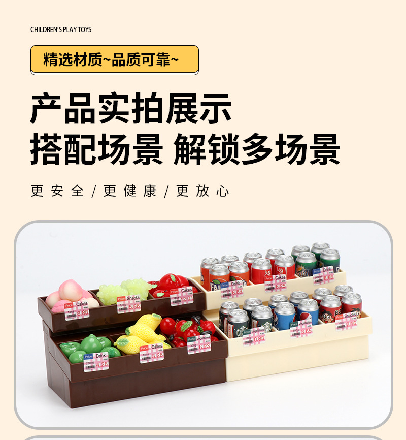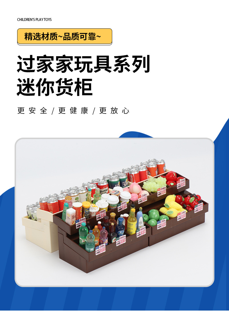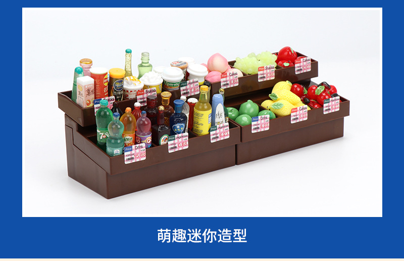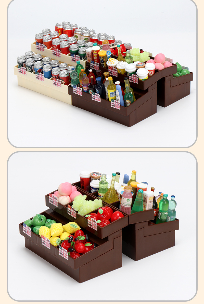 국경 간 미니 놀이 집 장난감 컨테이너 소형 음식 놀이 과일 저장 인형 집 장면 슈퍼마켓 디스플레이 캐비닛