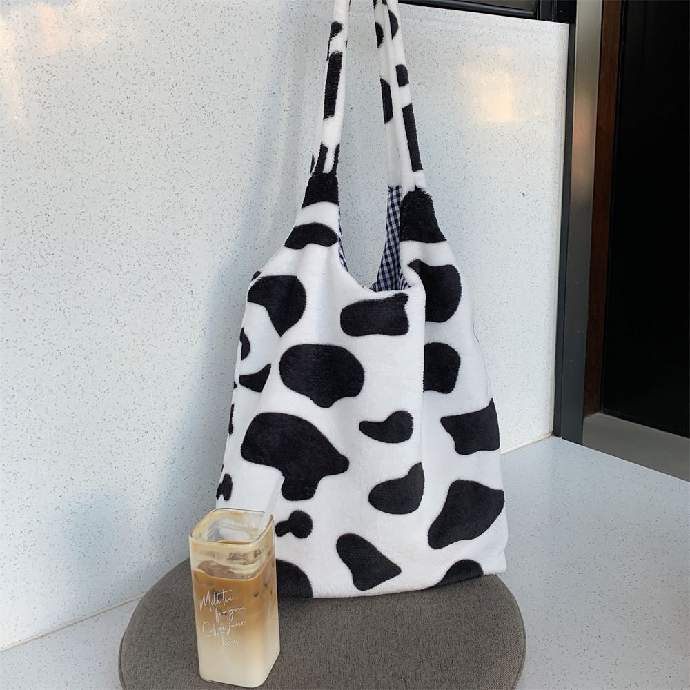 210211 봉제 낙농 어깨 크로스 바디 백 모든 경기 신선하고 귀여운 학생 대용량 체크 숄더 백