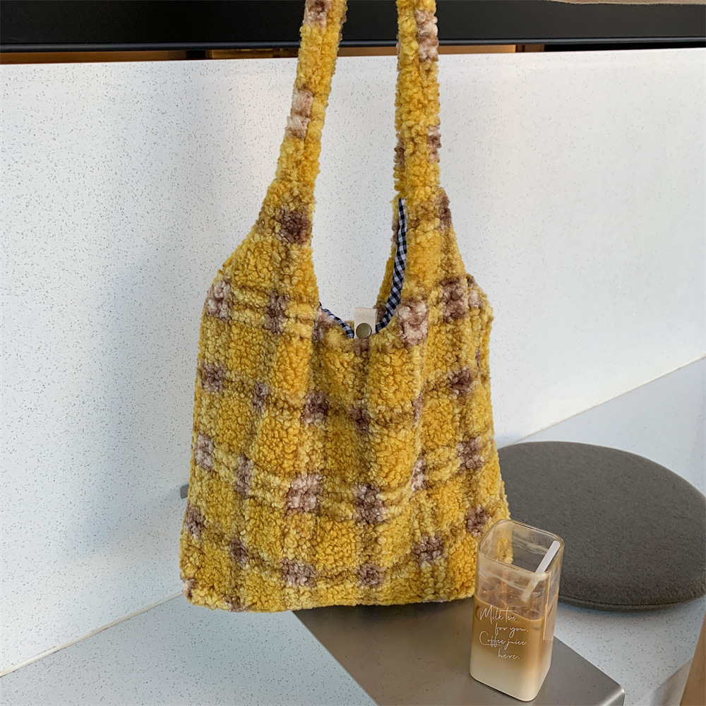 210211 봉제 낙농 어깨 크로스 바디 백 모든 경기 신선하고 귀여운 학생 대용량 체크 숄더 백스토어 가기