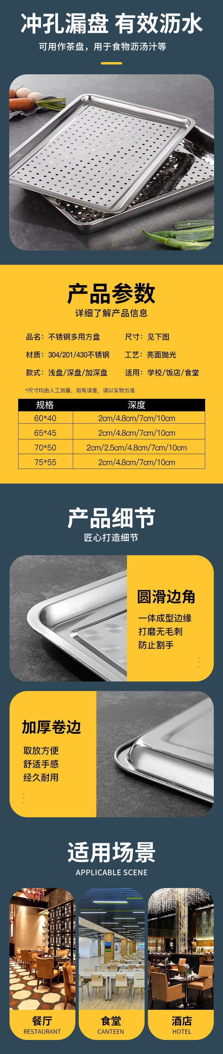 • 304SUS 70*50*4.8cm