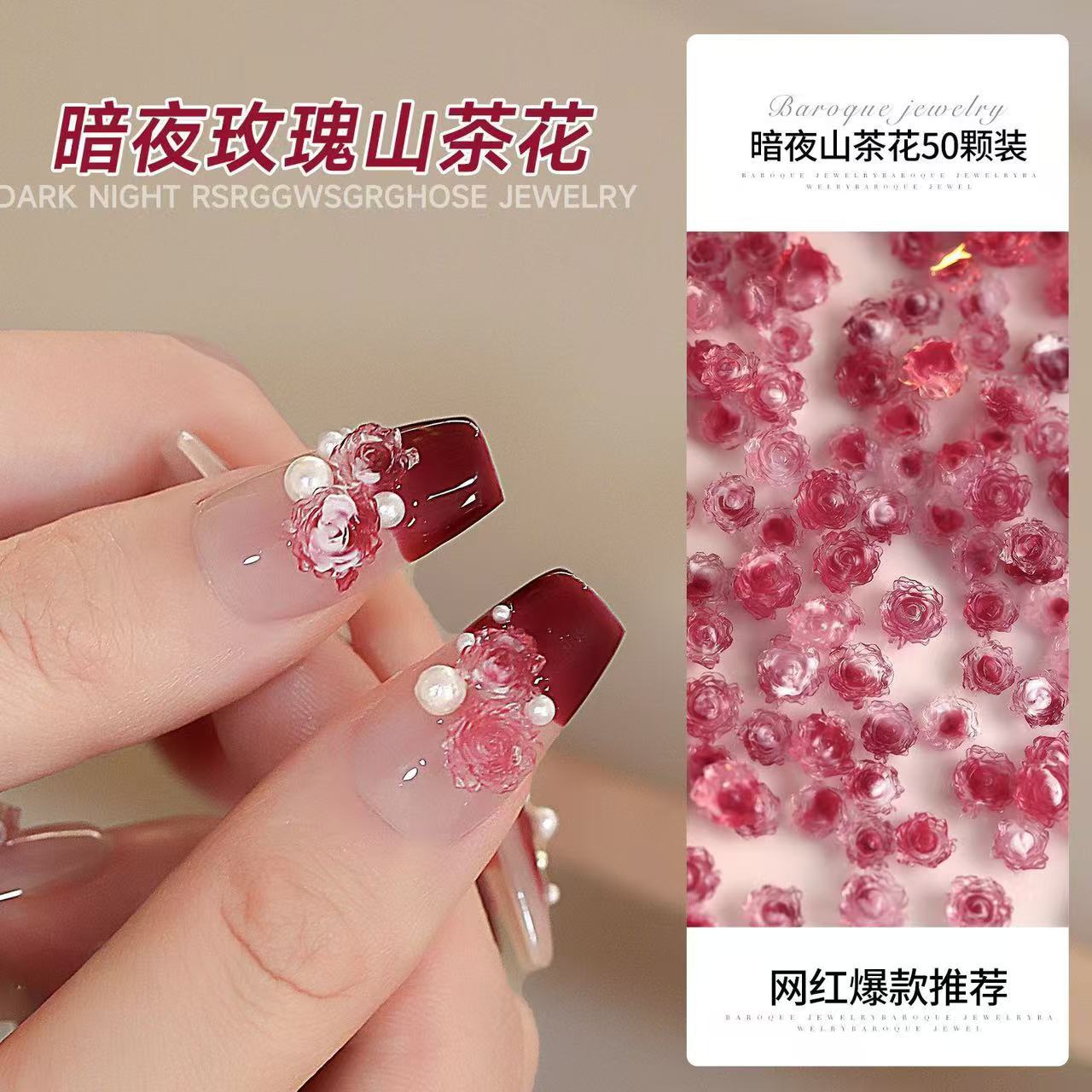 동백 네일 아트 쥬얼리 달콤한 쿨 스파이스 나이트 로즈 2 색 그라디언트 꽃 수지 네일 아트 네일 장식스토어 가기