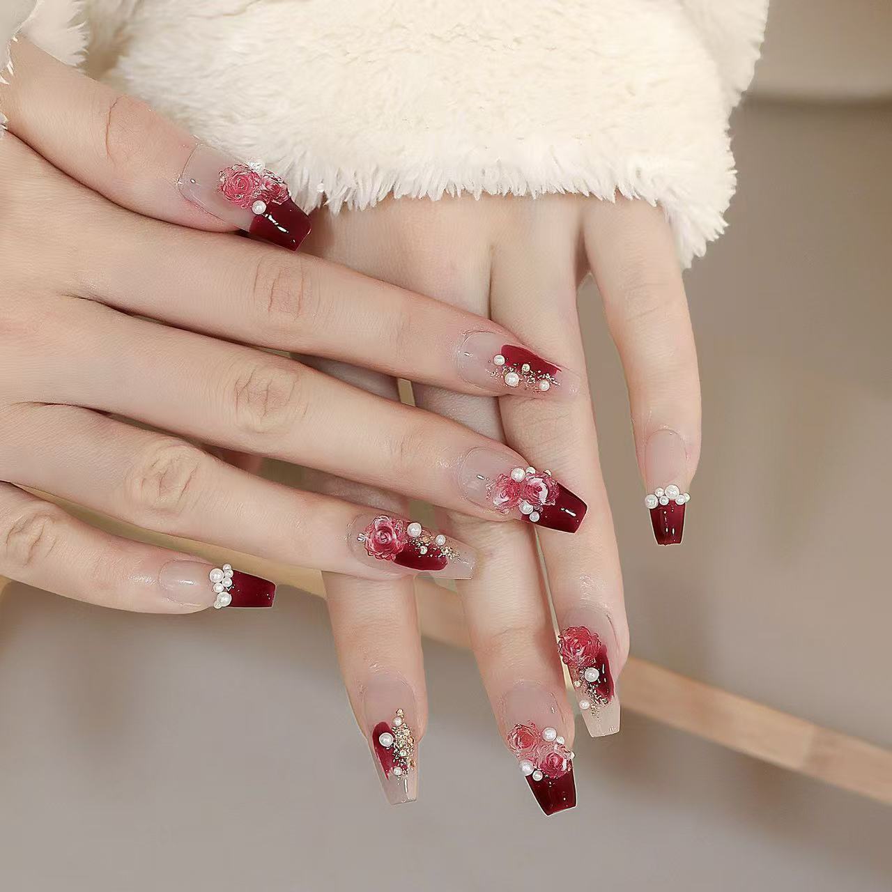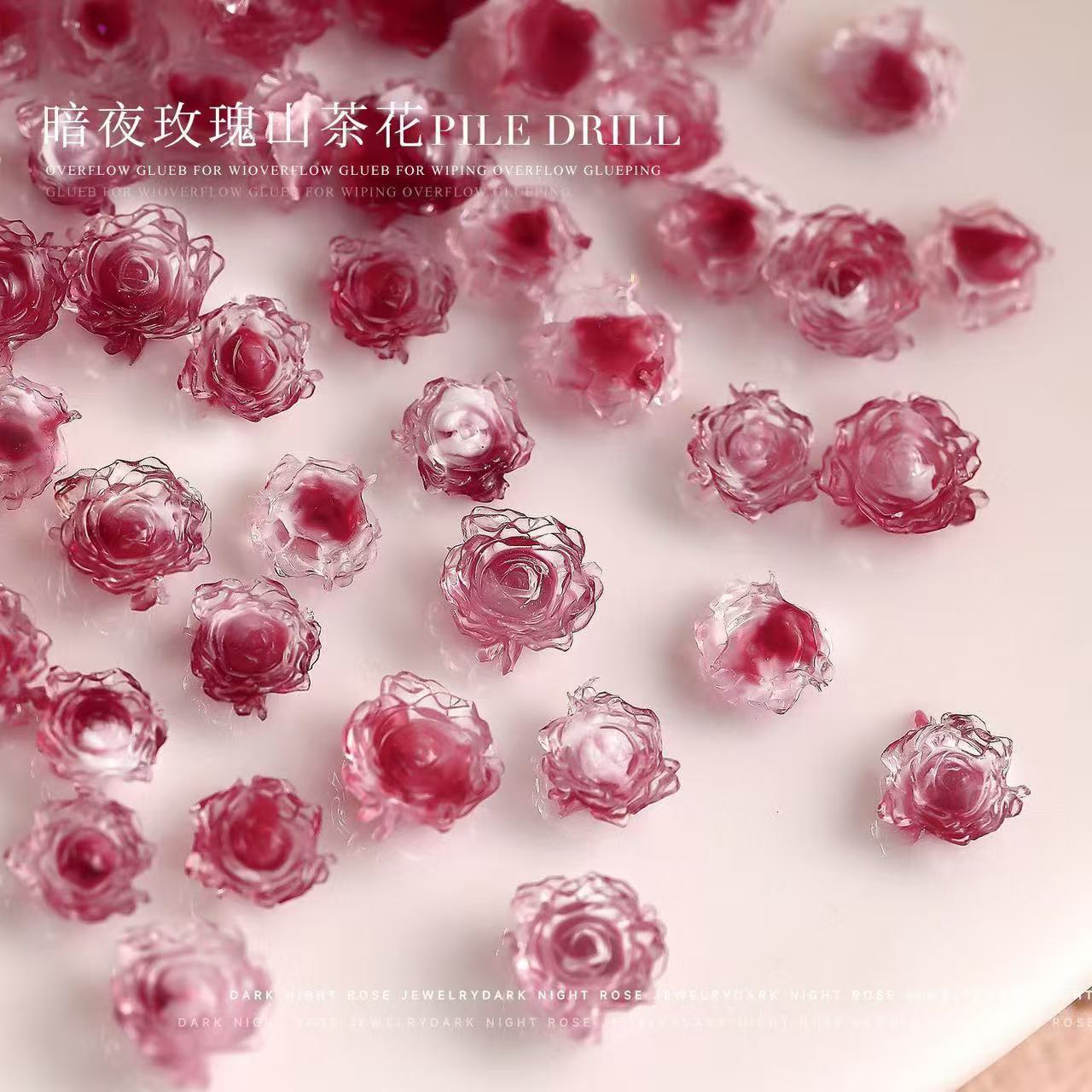 동백 네일 아트 쥬얼리 달콤한 쿨 스파이스 나이트 로즈 2 색 그라디언트 꽃 수지 네일 아트 네일 장식