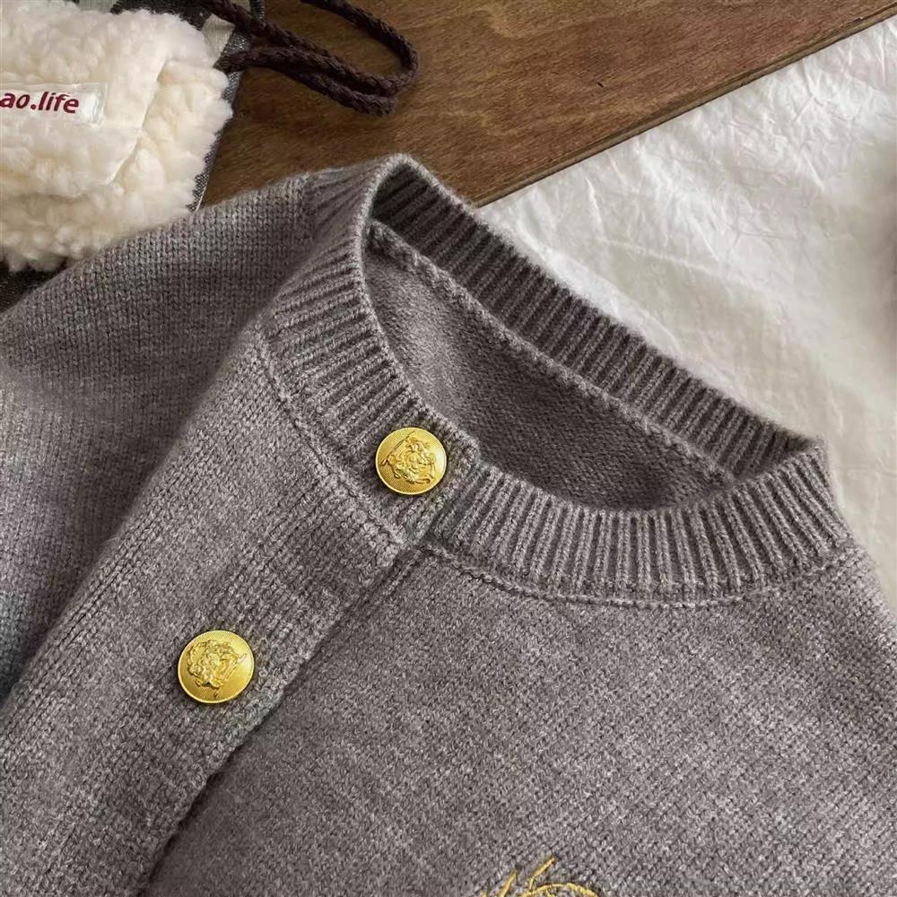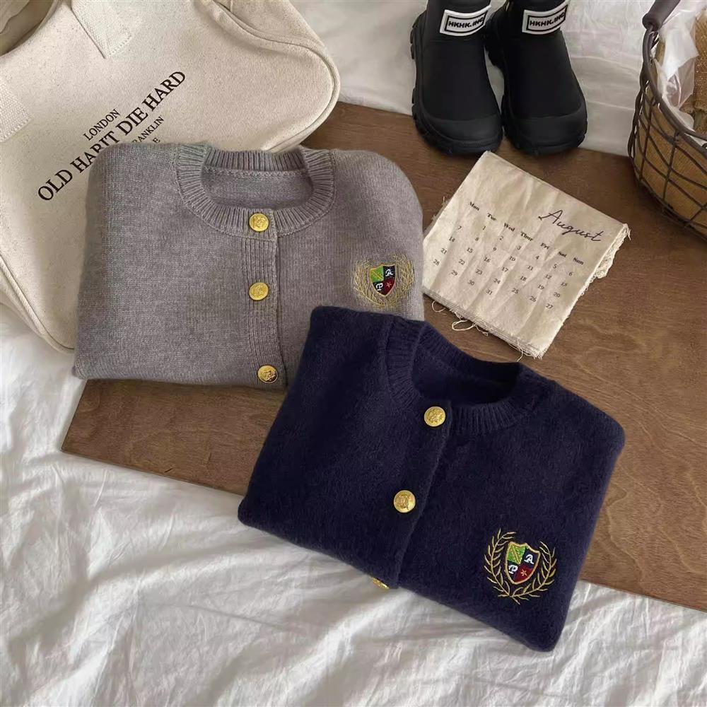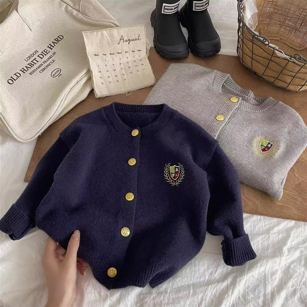 어린이 아카데미 스타일 봄과 가을 스웨터 카디건 2024 소년 소녀 소프트 탑 자수 솔리드 컬러 올 매치 코트 트렌디스토어 가기