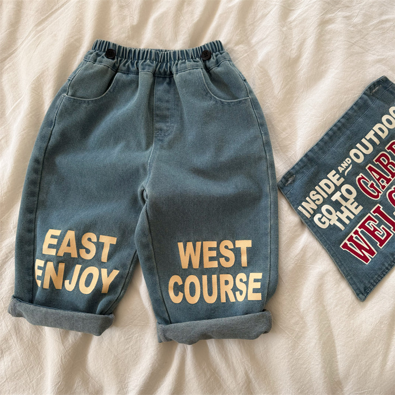 어린이 청바지 2025 봄 한국식 새 소년과 소녀 서양식 편지 인쇄 아기 캐주얼 스트레이트 바지 유행