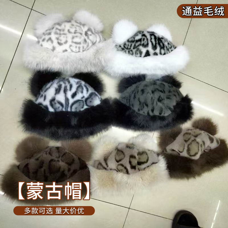 여성을위한 가을, 겨울 한국 스타일 모조 모피 플러시 귀 보호 분지 모자 표범 인쇄 곰 귀 두꺼운 방풍 따뜻한 어부 모자 유행스토어 가기