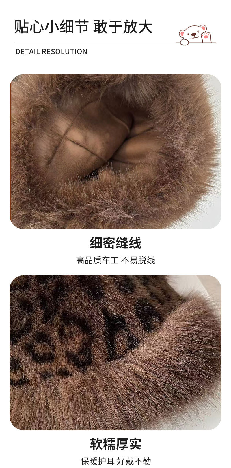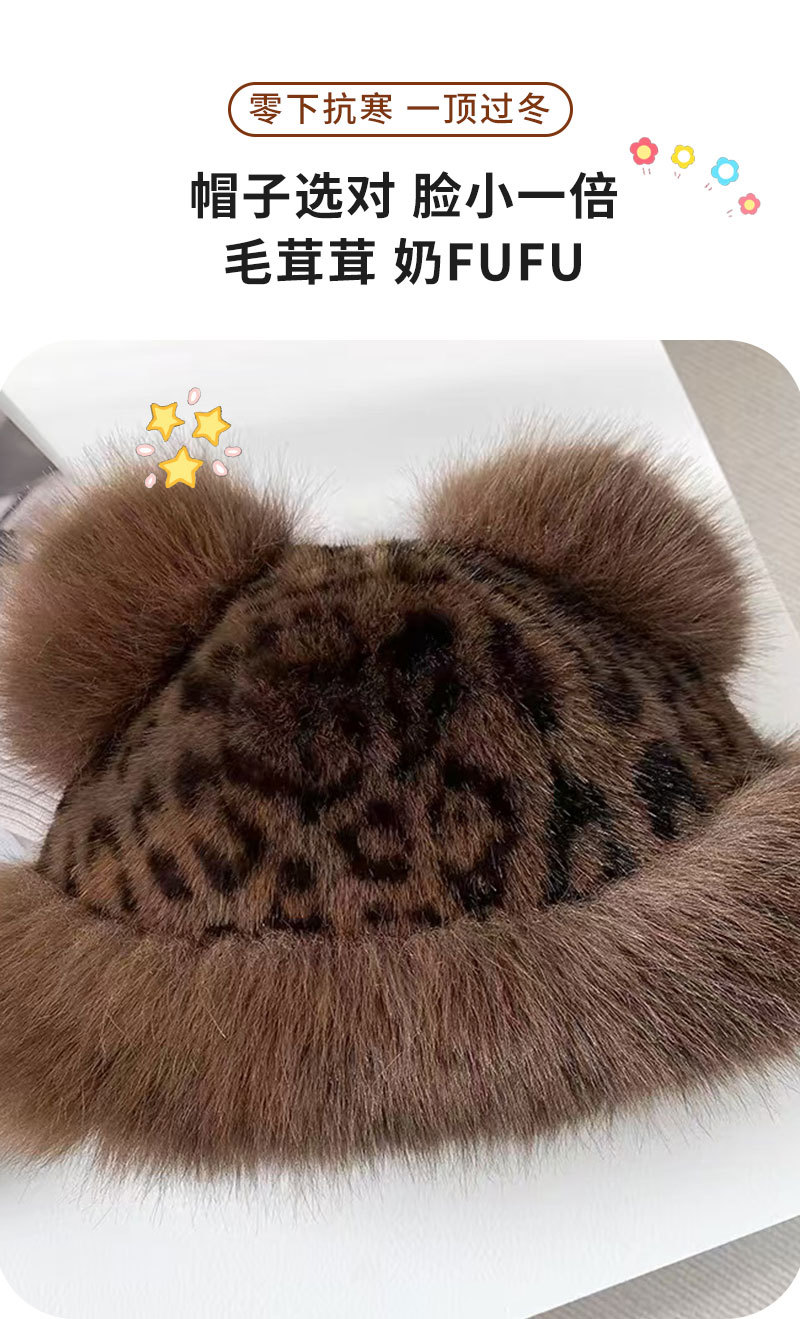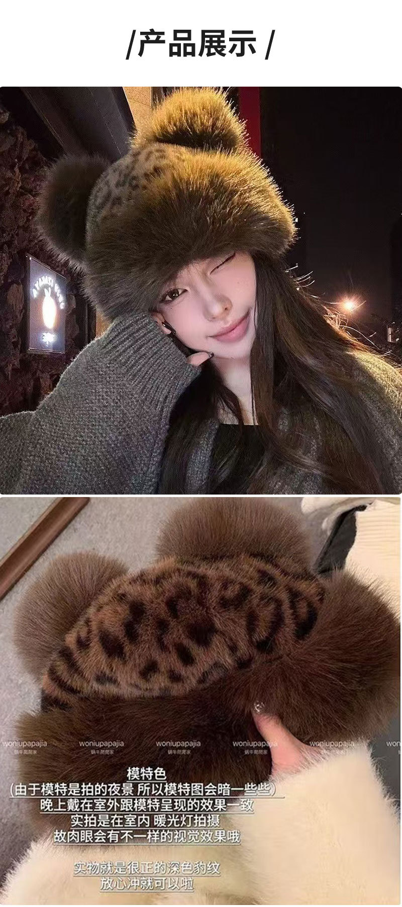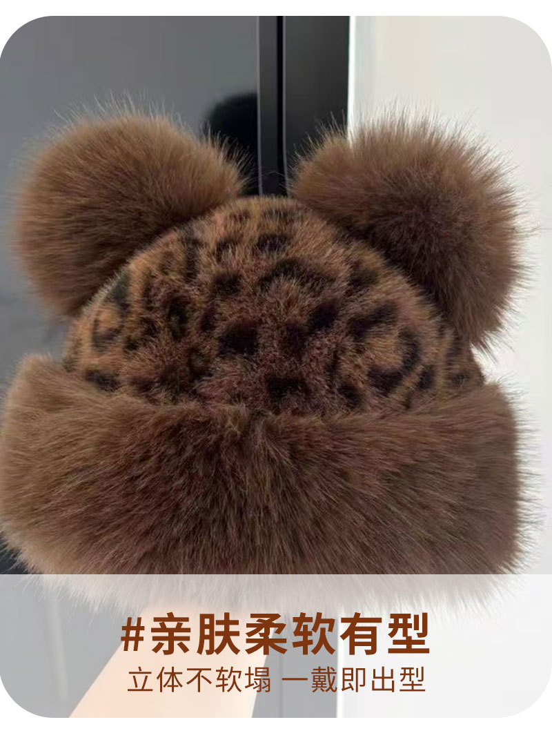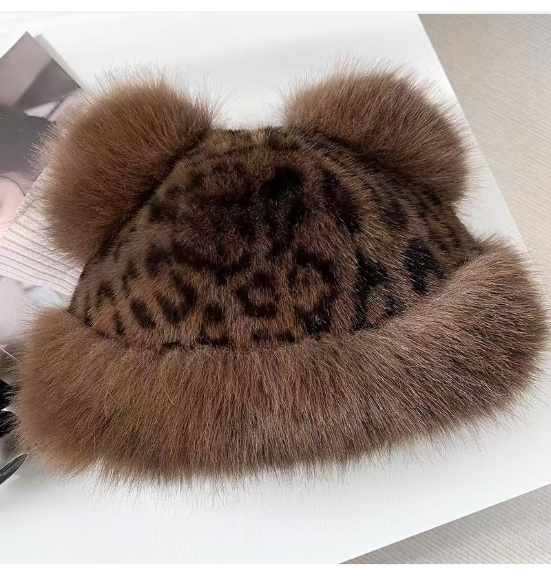 여성을위한 가을, 겨울 한국 스타일 모조 모피 플러시 귀 보호 분지 모자 표범 인쇄 곰 귀 두꺼운 방풍 따뜻한 어부 모자 유행