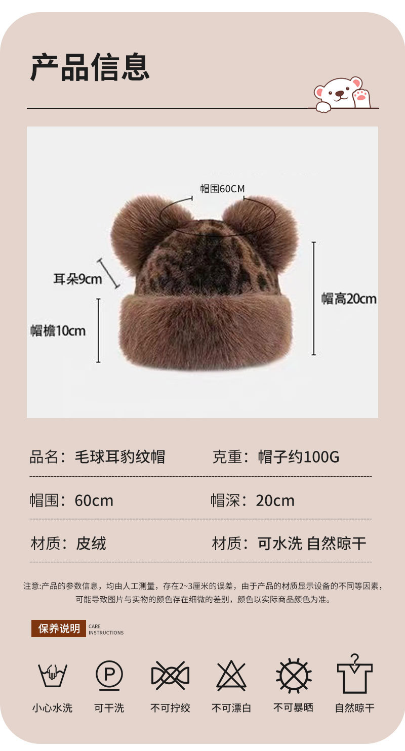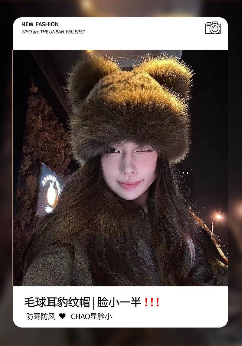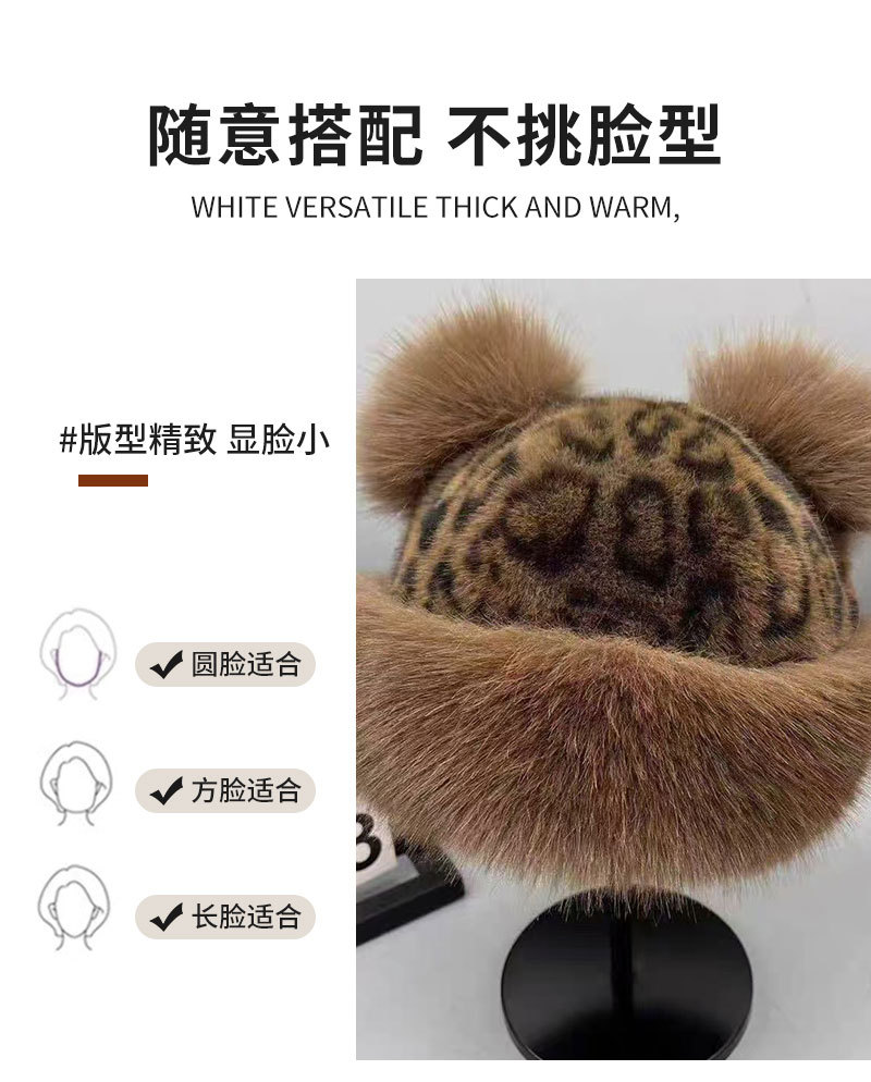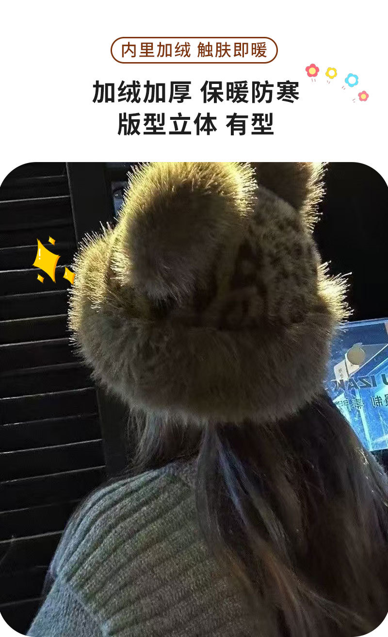 여성을위한 가을, 겨울 한국 스타일 모조 모피 플러시 귀 보호 분지 모자 표범 인쇄 곰 귀 두꺼운 방풍 따뜻한 어부 모자 유행