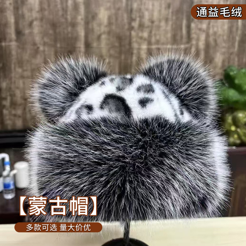 • 블랙 레오파드 프린트-실버 폭스 모자