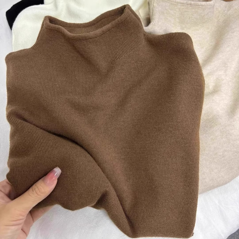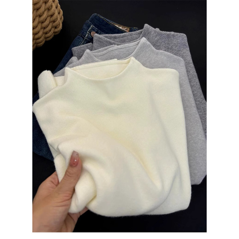 초가을 작은 세트 칼라 밀크 푸푸 소프트 왁스 니트 긴팔 베이스 셔츠 여성용 겨울 스웨터 한국 스타일 심플 탑 내부 셔츠