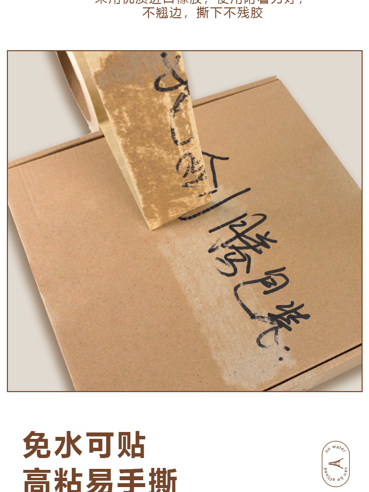 자연색 고무 물없는 크래프트 종이 테이프 높은 접착 환경 친화적 인 종이 밀봉 접착 천 다크 브라운 쓰기 가능한 크래프트 종이 테이프