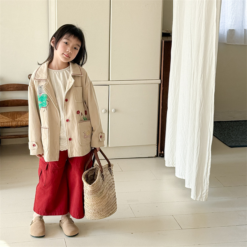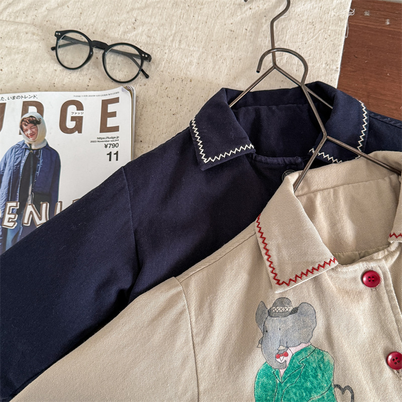2025 아동 의류 가을 새로운 어린이 가을 의류 한국 스타일 워시 코튼 자켓 소녀 소년 윈드 브레이커 6069