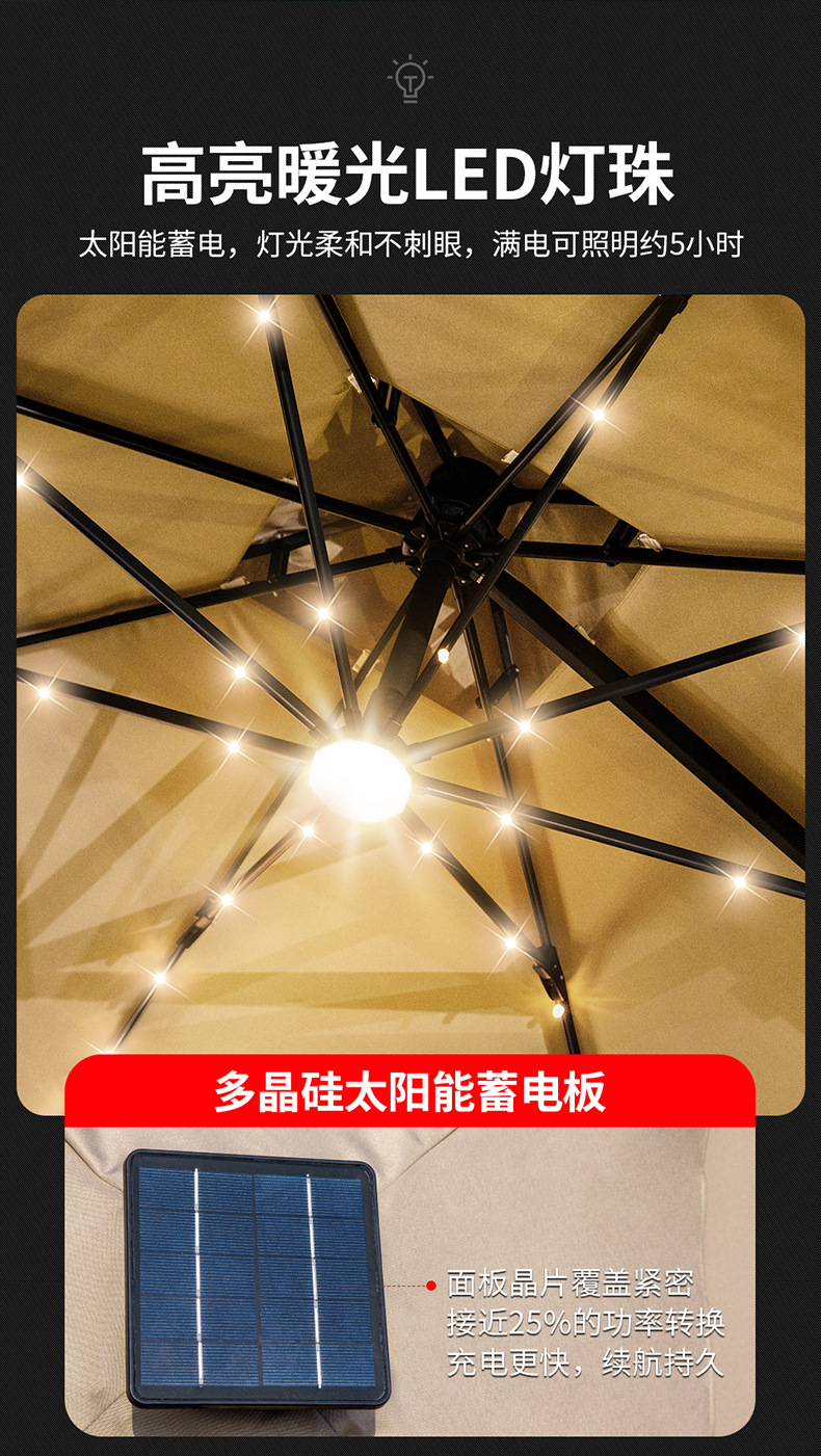 야외 파라솔, 안뜰 파라솔, 테라스 파라솔, 대형 정원 홈 상업용 우산, 조명이 있는 태양열 로마 우산스토어 가기