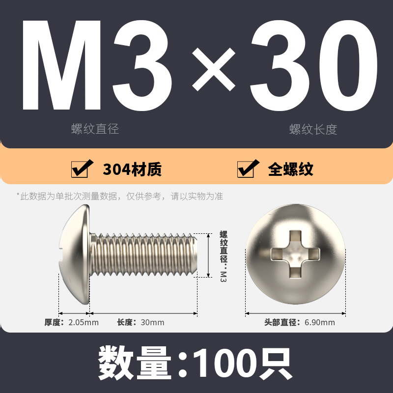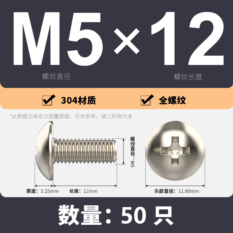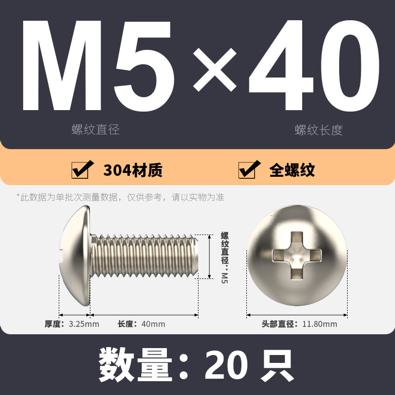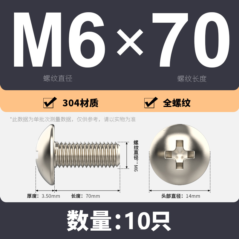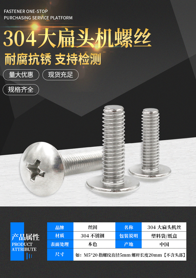 304 스테인레스 스틸 대형 플랫 헤드 기계 치아 나사 우산 헤드 필립스 나사 M5/M6/M8 시리즈