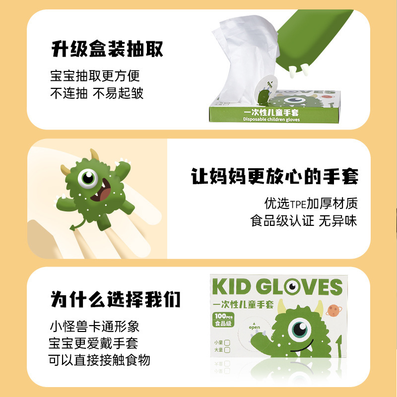 재고 식품 학년 가정용 플라스틱 장갑 어린이와 아기를위한 두꺼운 케이터링 보호 어린이 일회용 장갑