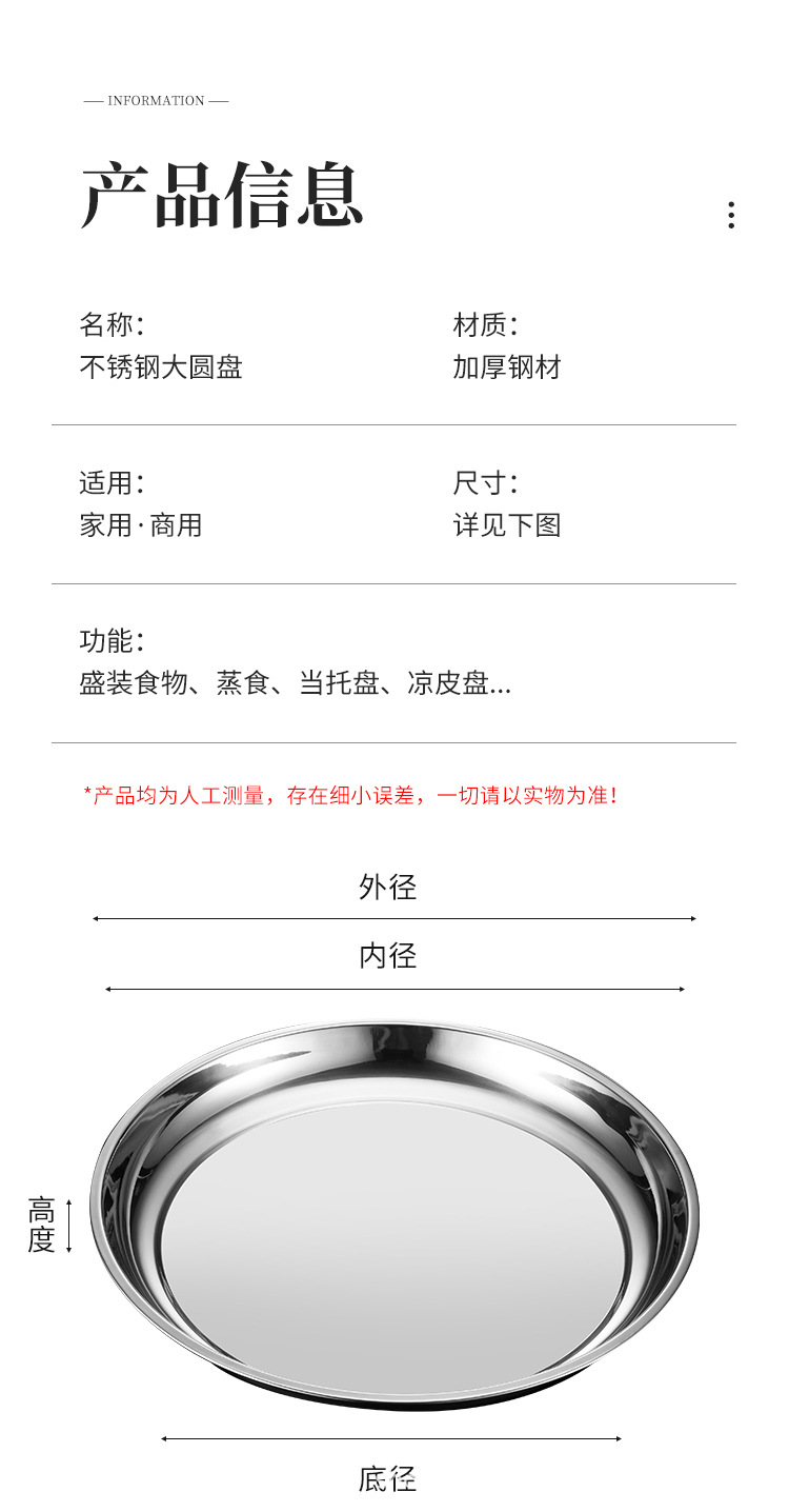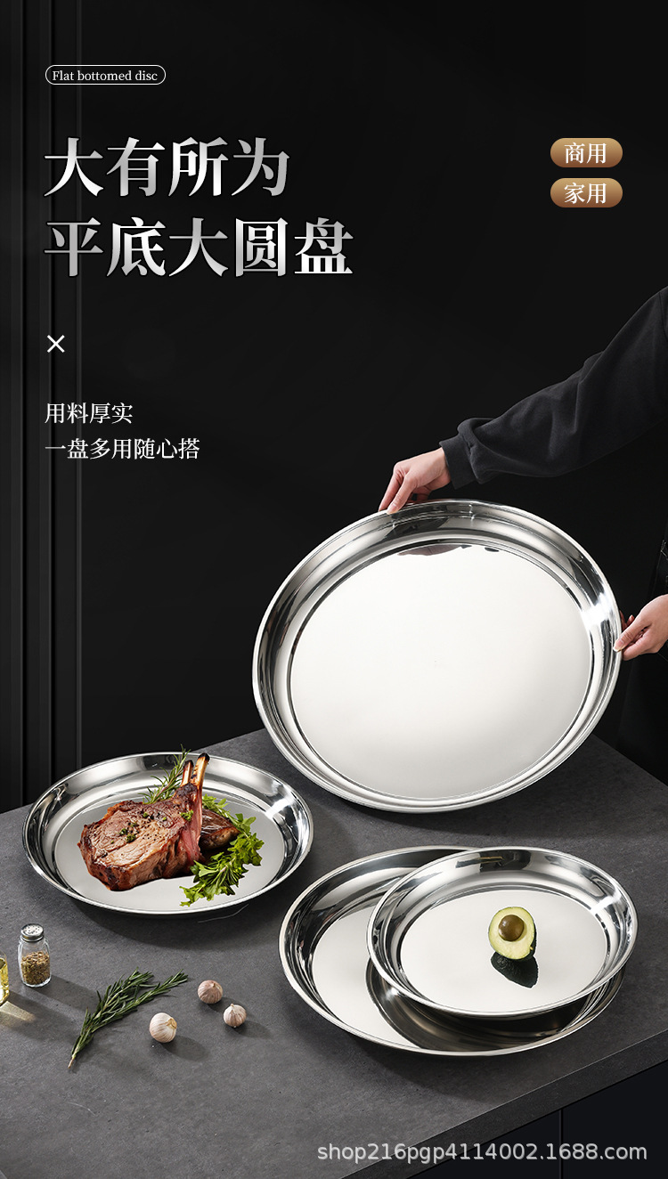 스테인리스 접시 원형 대형 접시 얕은 접시 트레이 평평한 접시 바비큐 접시 심플 스타일스토어 가기