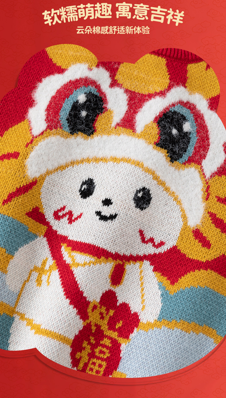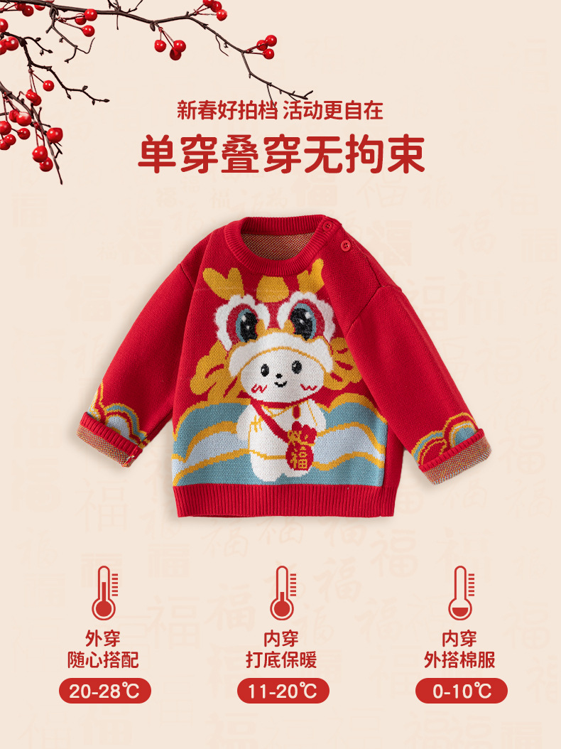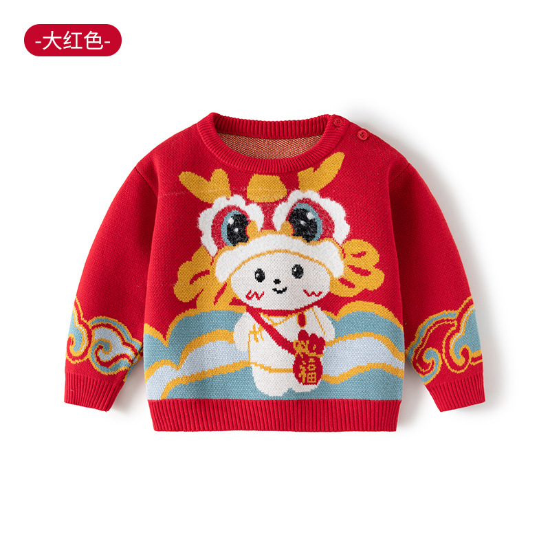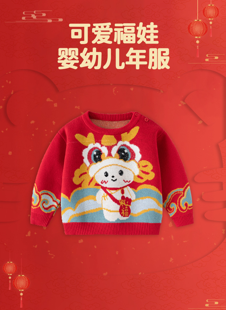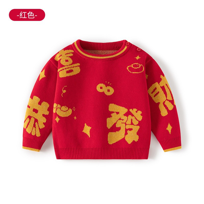 [귀여운 푸와] 니트 코튼 베이비 스웨터 클래스 빨간 스웨터 어린이 Guofeng 아기 신년 옷
