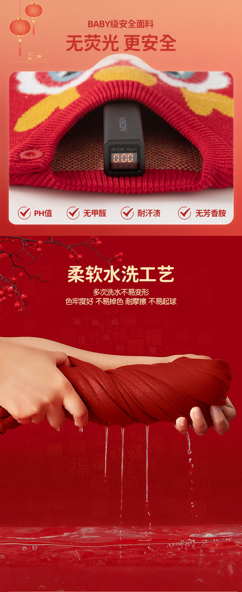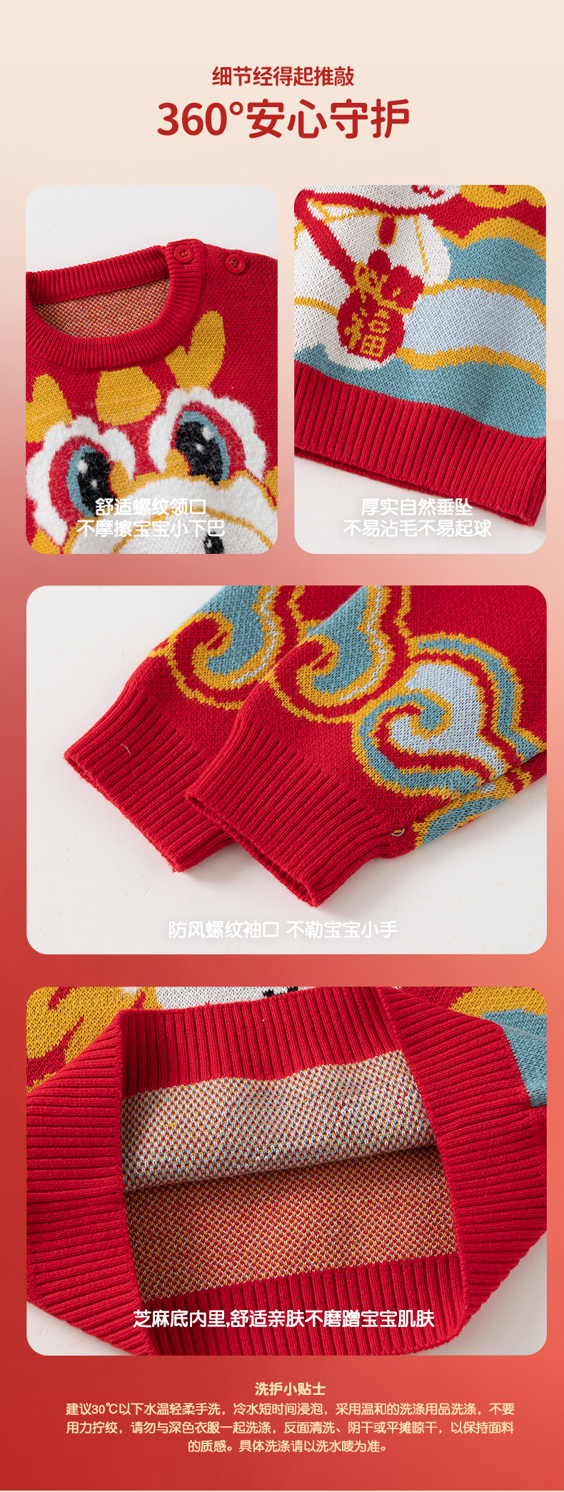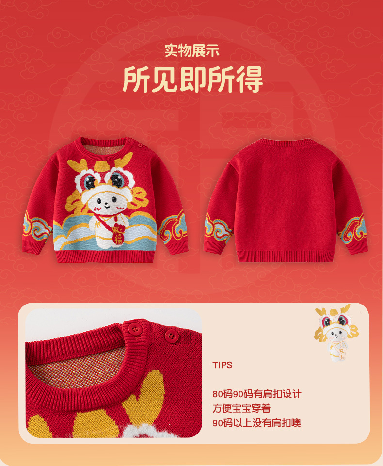 [귀여운 푸와] 니트 코튼 베이비 스웨터 클래스 빨간 스웨터 어린이 Guofeng 아기 신년 옷스토어 가기