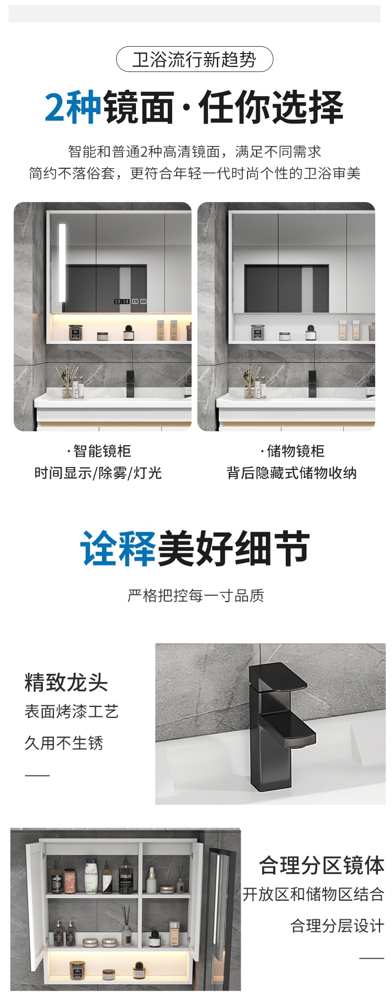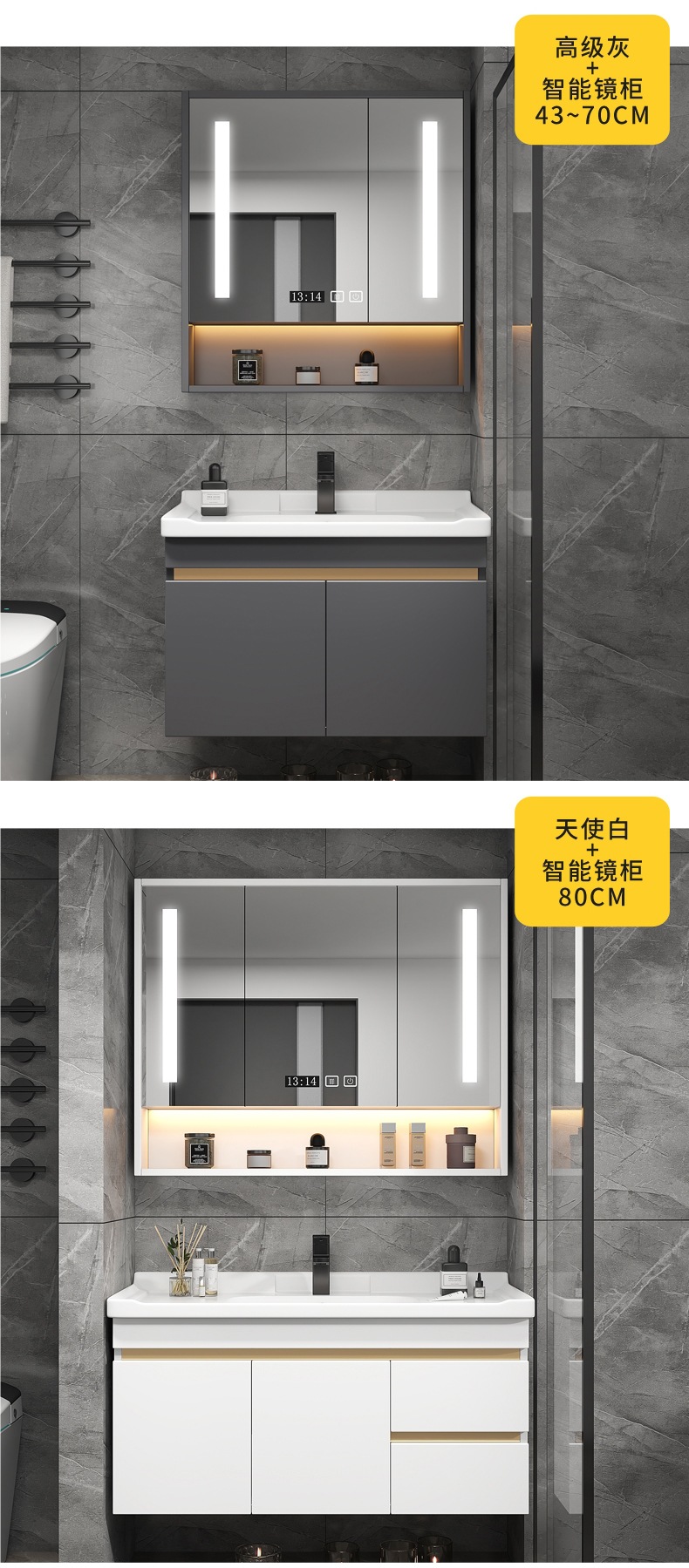• 80cm 아이언 그레이 스마트 거울 캐비닛에는 수도꼭지 액세서리가 함께 제공됩니다.