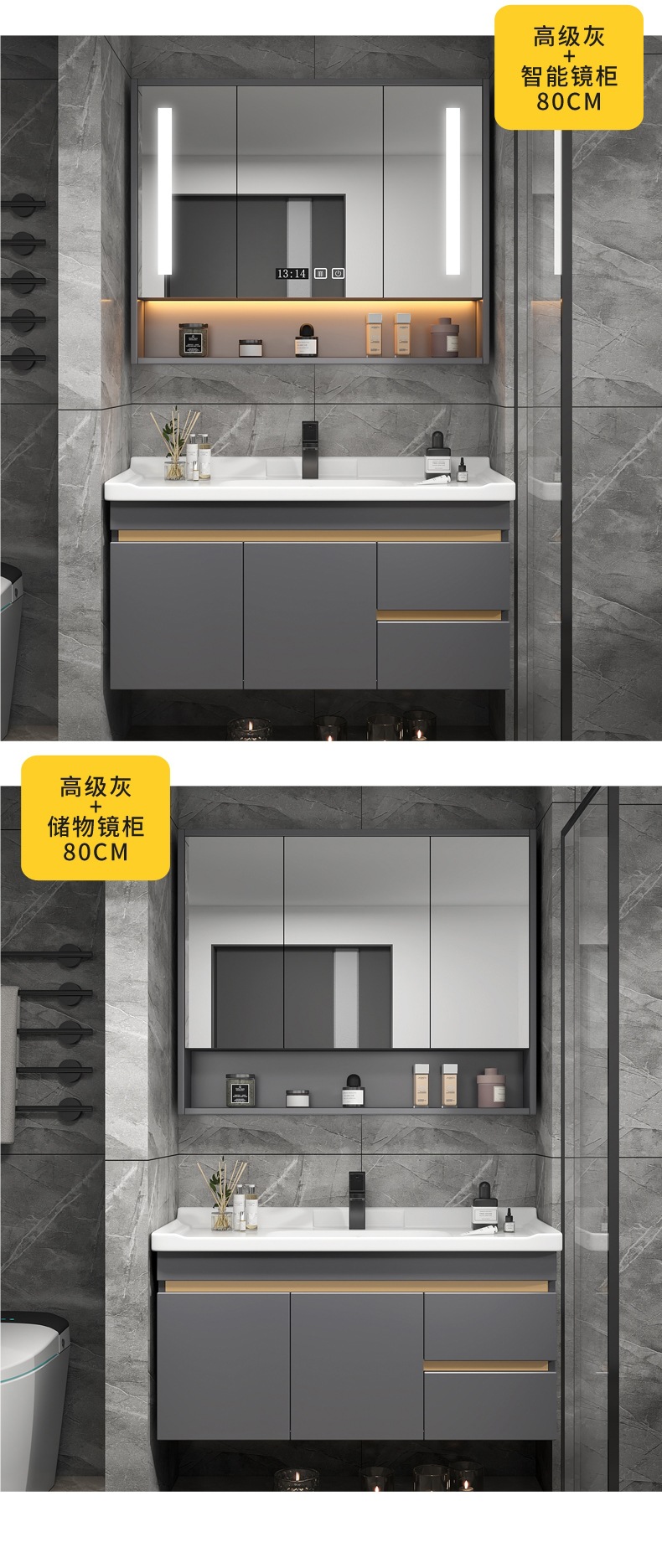 • 80cm 아이언 그레이 일반 거울 캐비닛에는 수도꼭지 액세서리가 함께 제공됩니다.