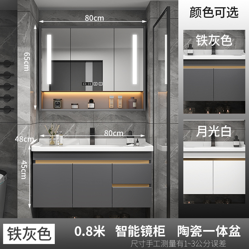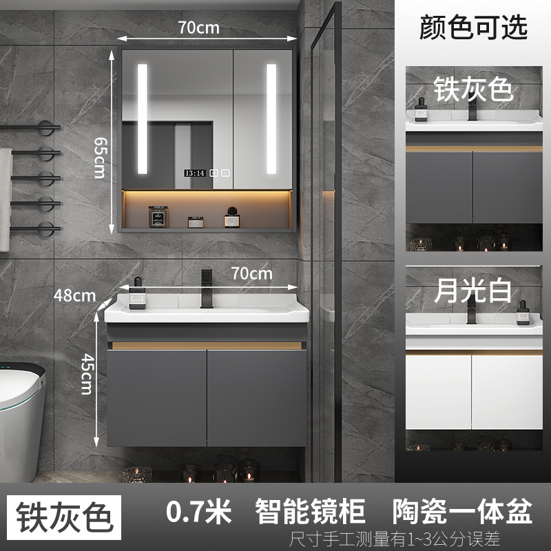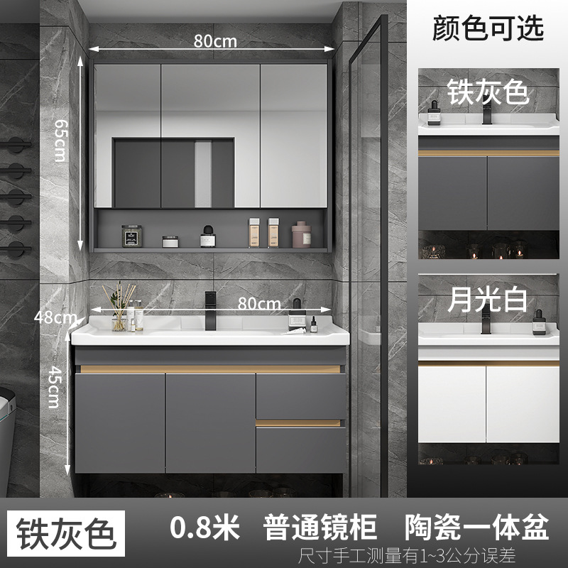 화장실 욕실 캐비닛 조합 세라믹 통합 세척 테이블 작은 아파트 60cm 회색 단단한 나무 50 세척 세면대