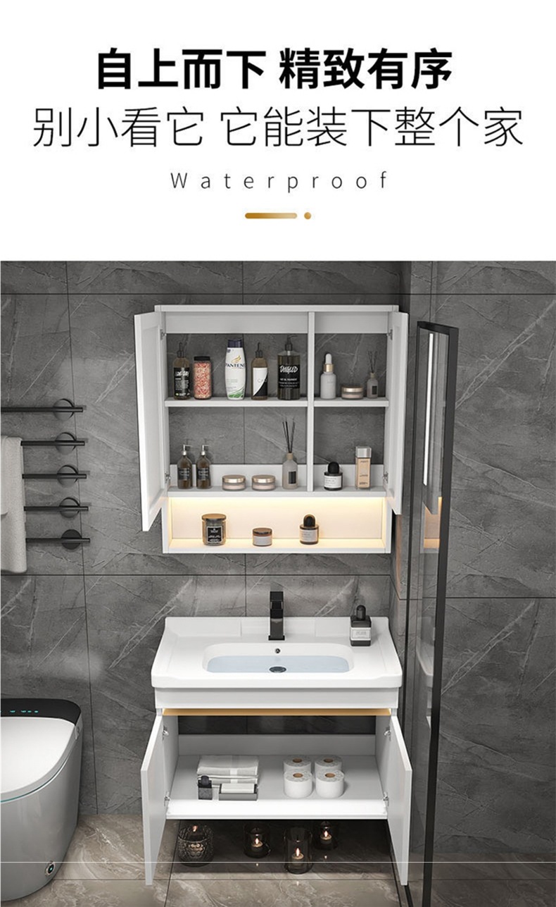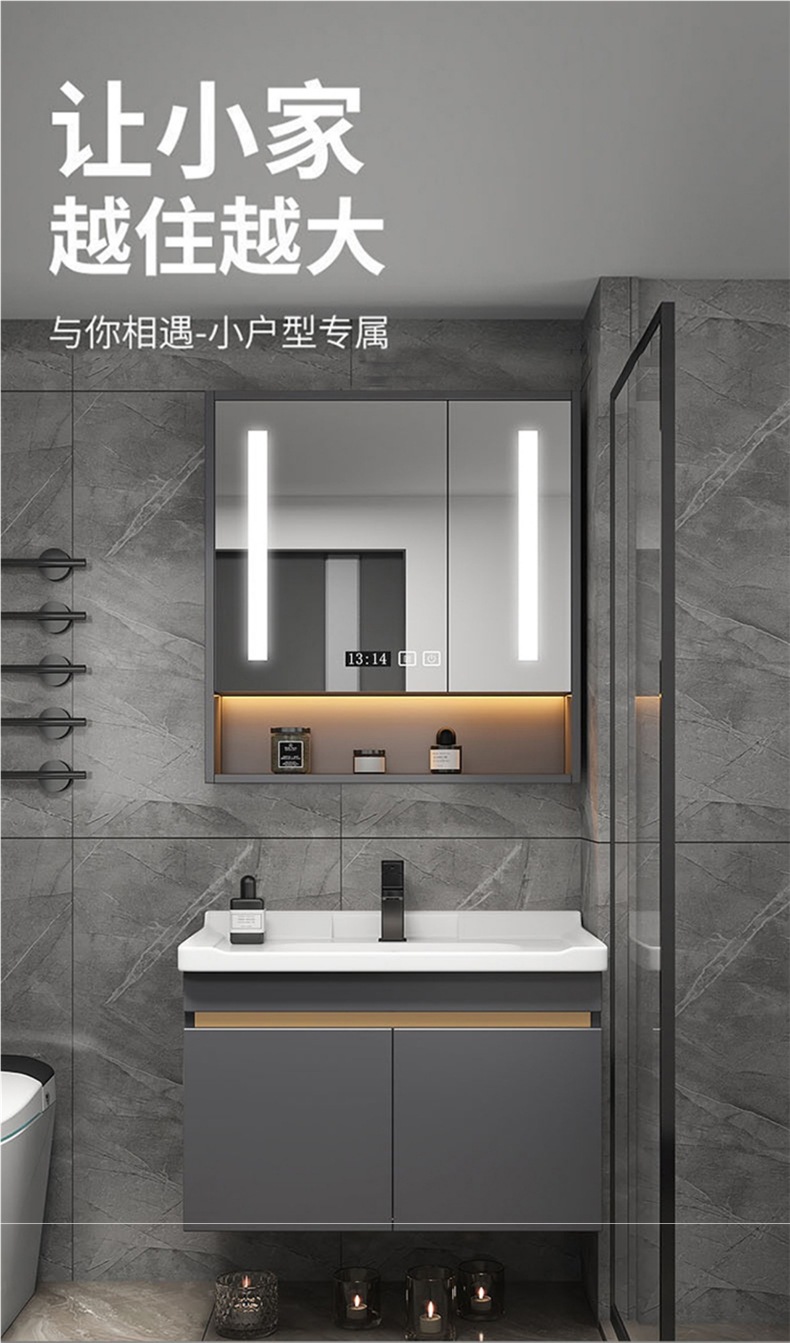화장실 욕실 캐비닛 조합 세라믹 통합 세척 테이블 작은 아파트 60cm 회색 단단한 나무 50 세척 세면대스토어 가기