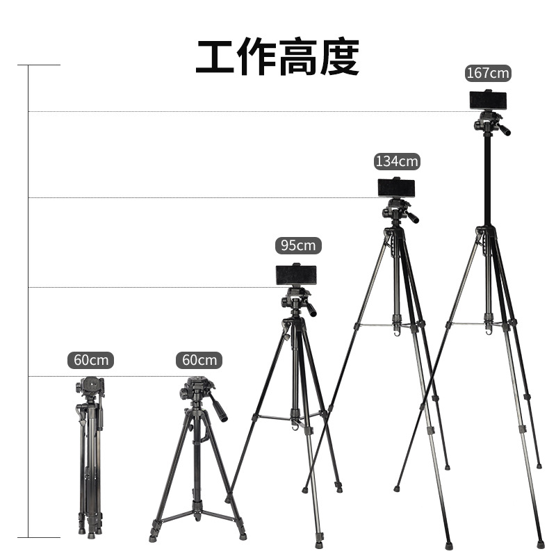 • 1.67m, 360 삼각대 + 휴대폰 클립 + 브래킷 가방