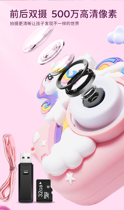 • HD 듀얼 카메라 + 핑크 유니콘 + 카드 리더기 포함 32G 카드
