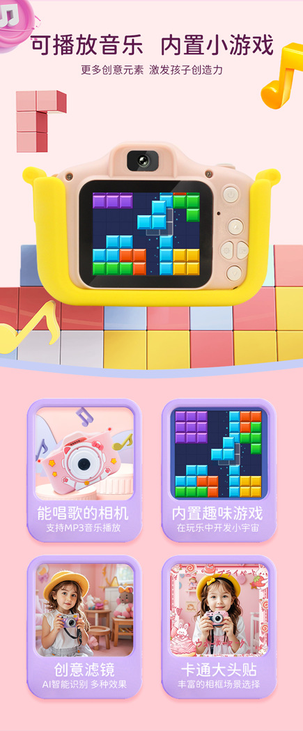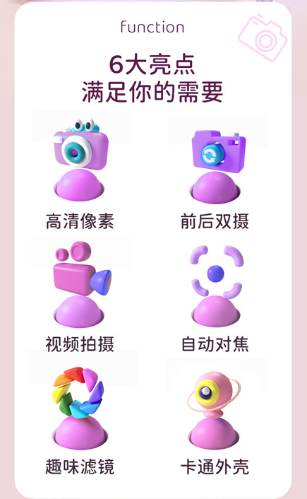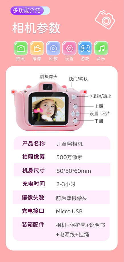 • HD 듀얼 카메라 핑크 어린이 카메라
