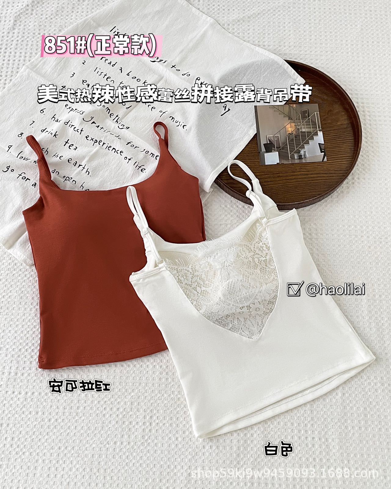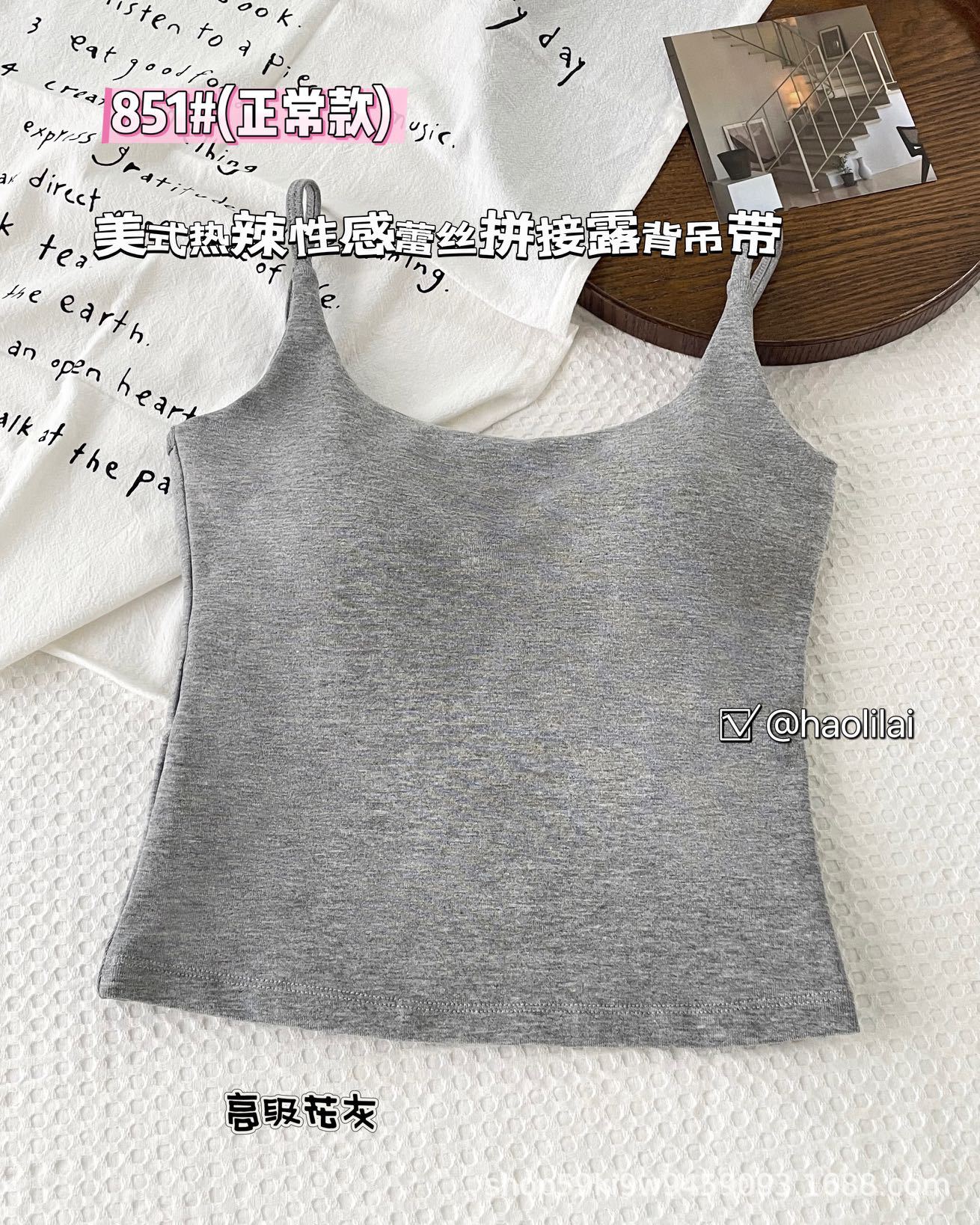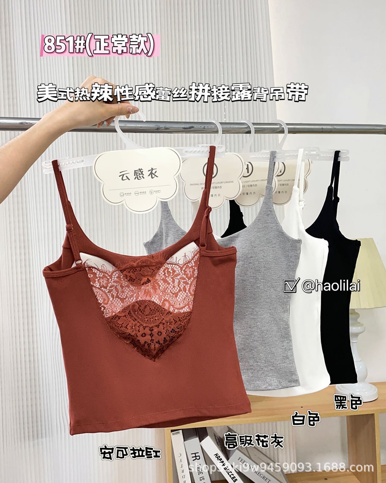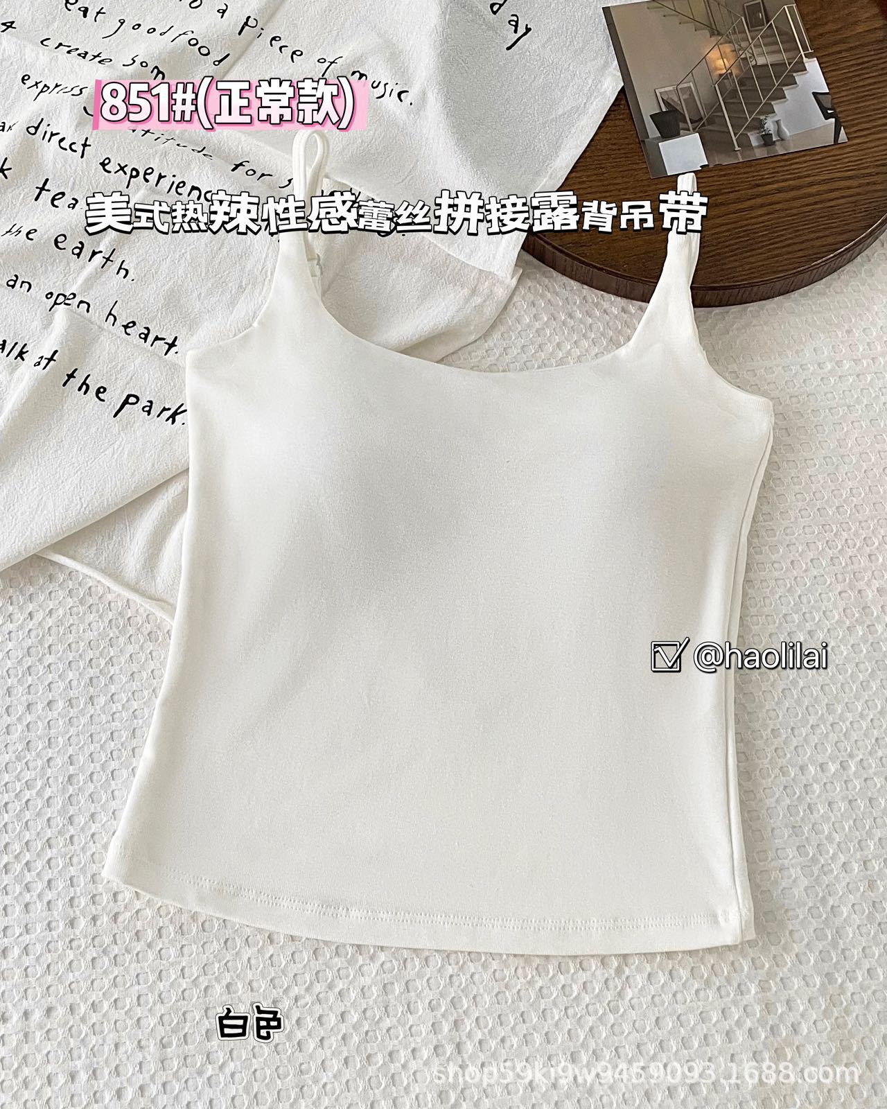 851 # 봄과 여름 새로운 미국 핫 레이스 스티칭 백리스 슬링 고정 컵 가슴 패드 슬림 핏 헤더 여성스토어 가기