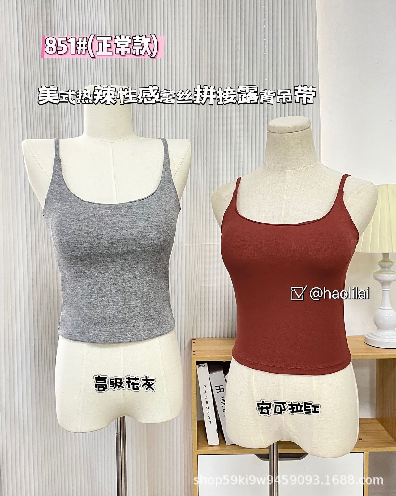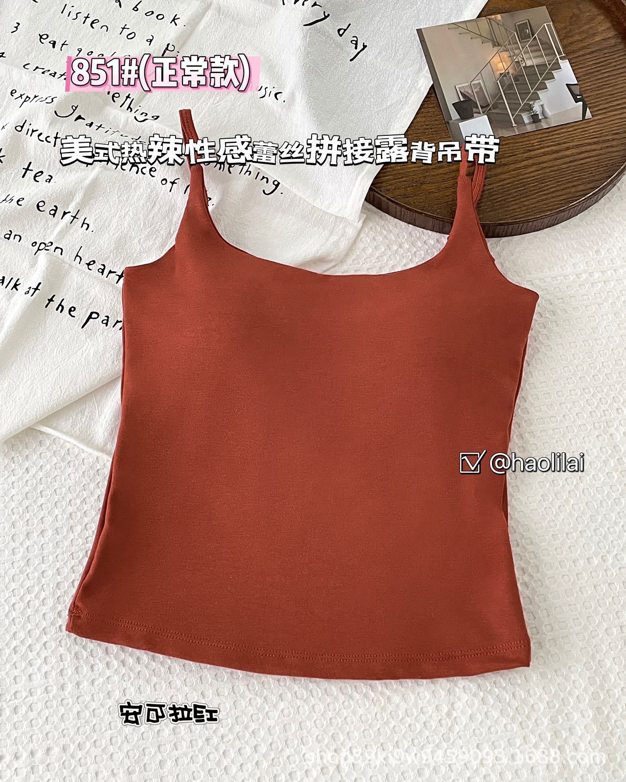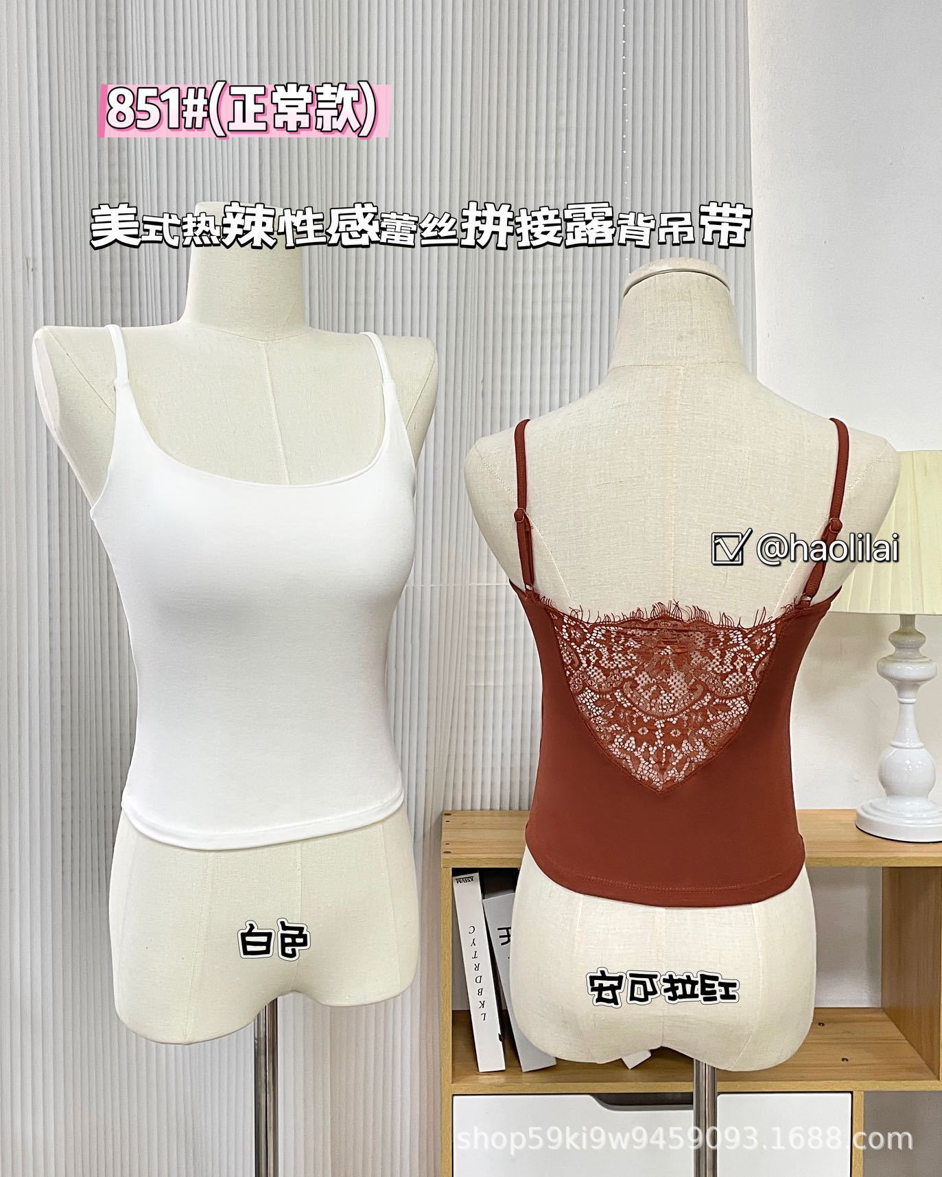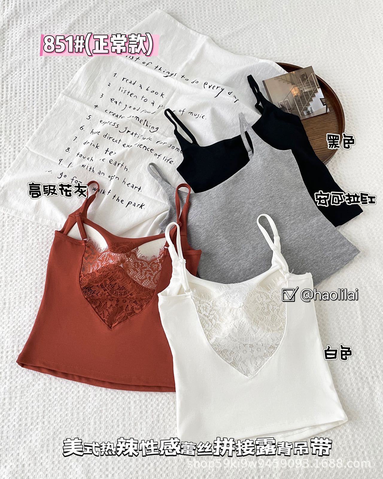 851 # 봄과 여름 새로운 미국 핫 레이스 스티칭 백리스 슬링 고정 컵 가슴 패드 슬림 핏 헤더 여성스토어 가기