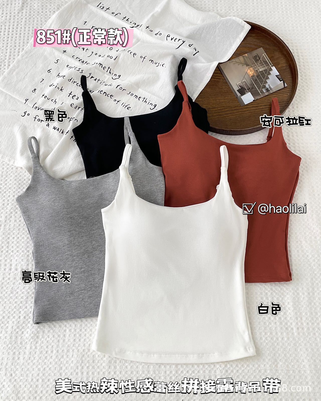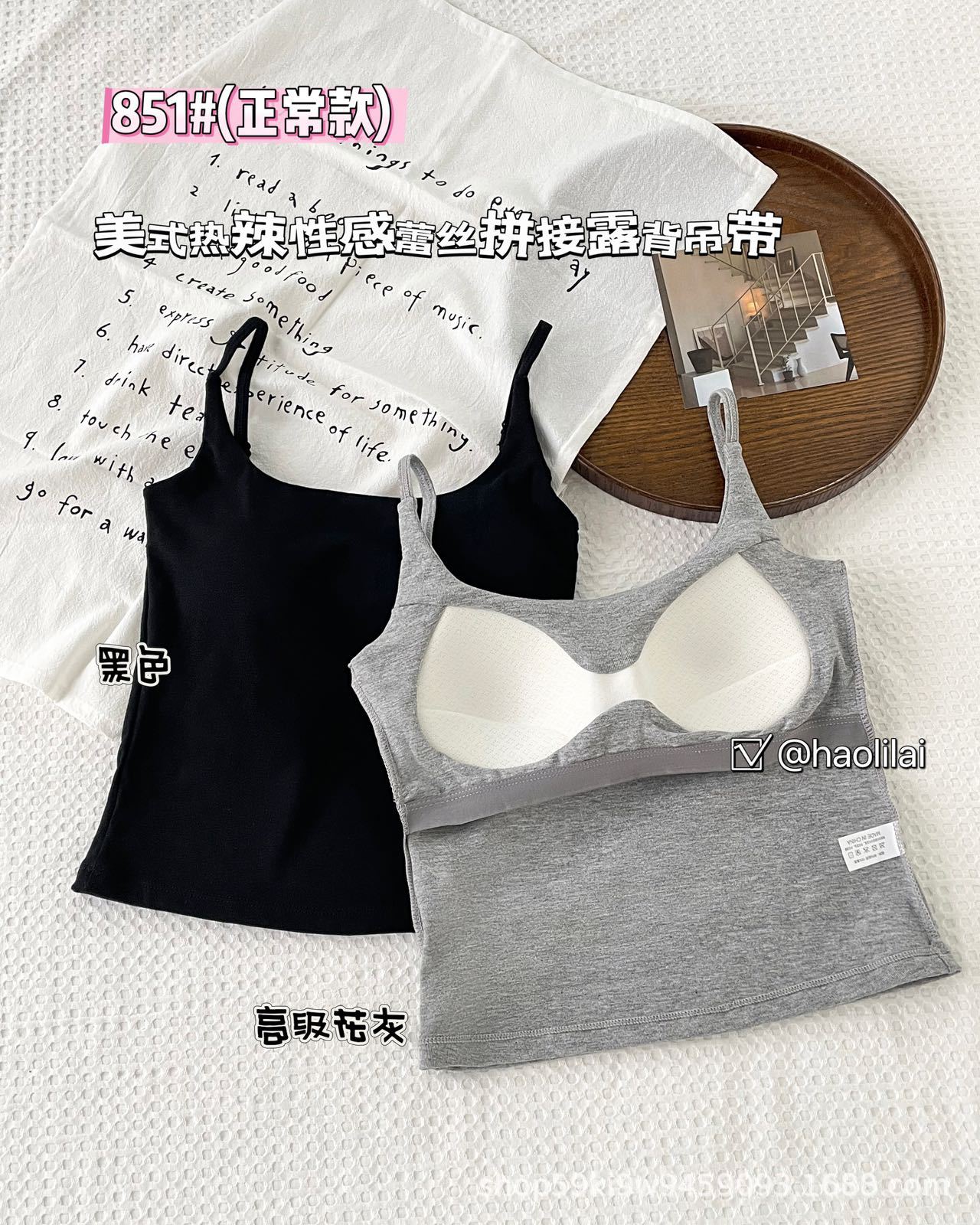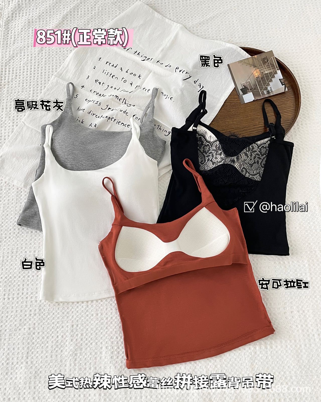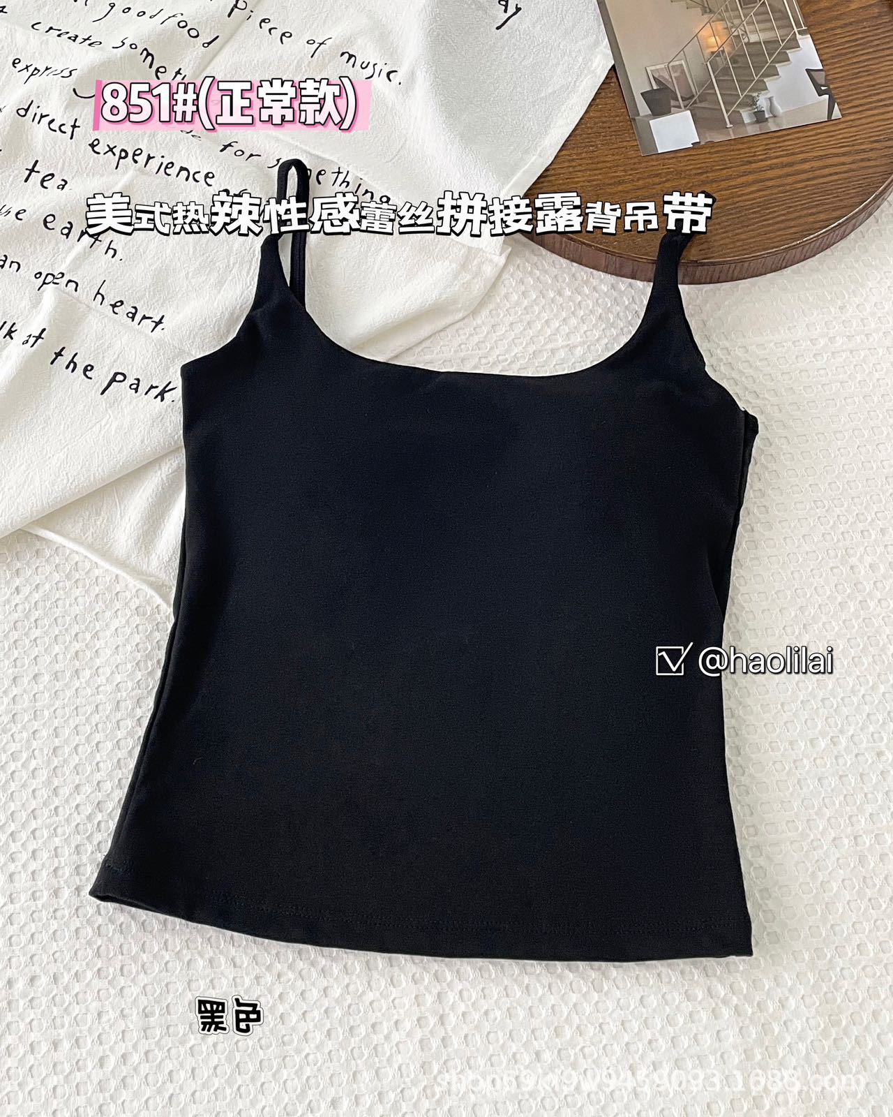 851 # 봄과 여름 새로운 미국 핫 레이스 스티칭 백리스 슬링 고정 컵 가슴 패드 슬림 핏 헤더 여성스토어 가기