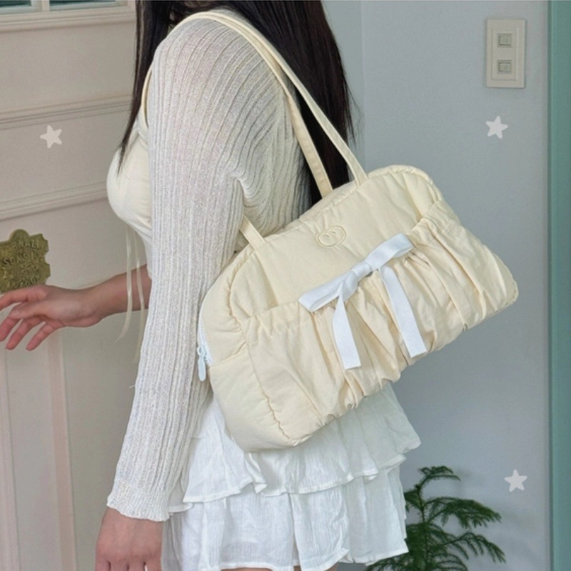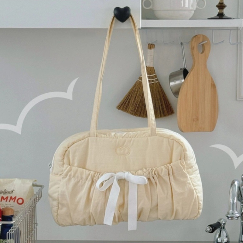 한국 인 클라우드 자수 활 레이스 업 보스턴 가방 대용량 통근 여성 매일 주름 어깨 가방스토어 가기
