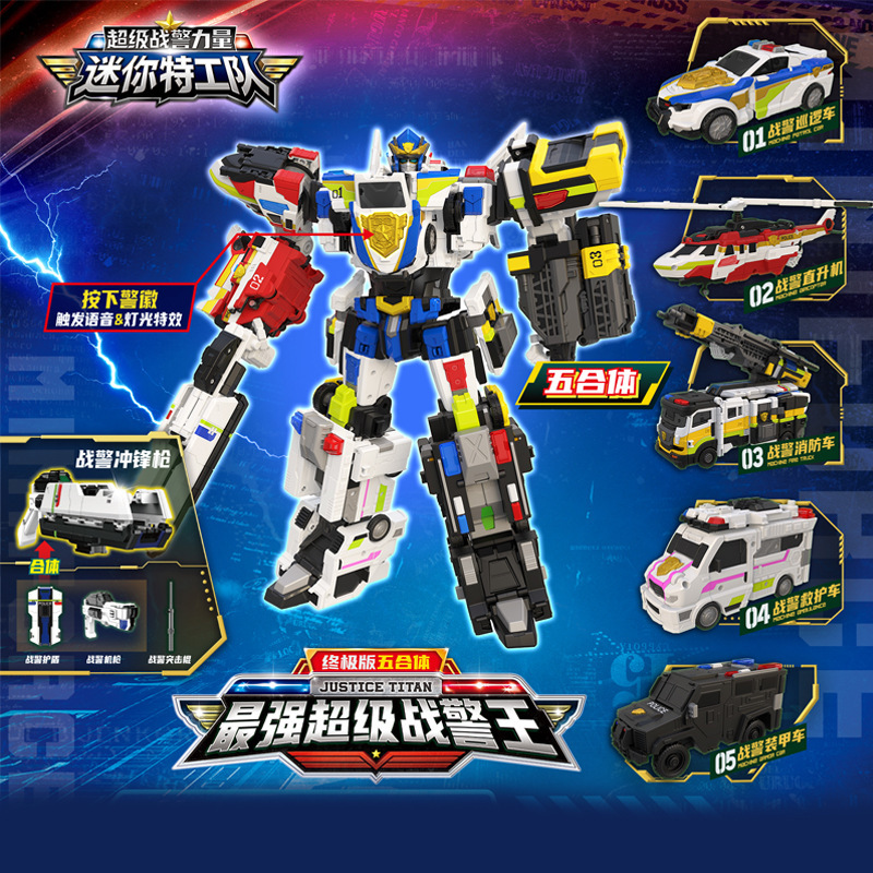 재고 폭발 미니 비밀 서비스 슈퍼 경찰 강제 메카 변형 로봇 모델 소년 장난감 선물