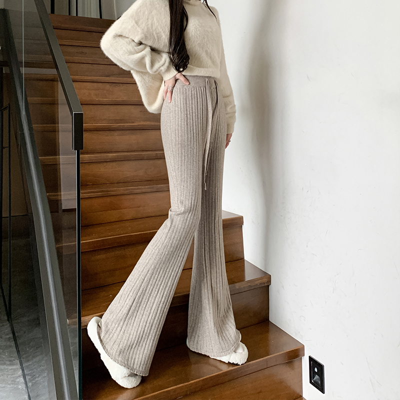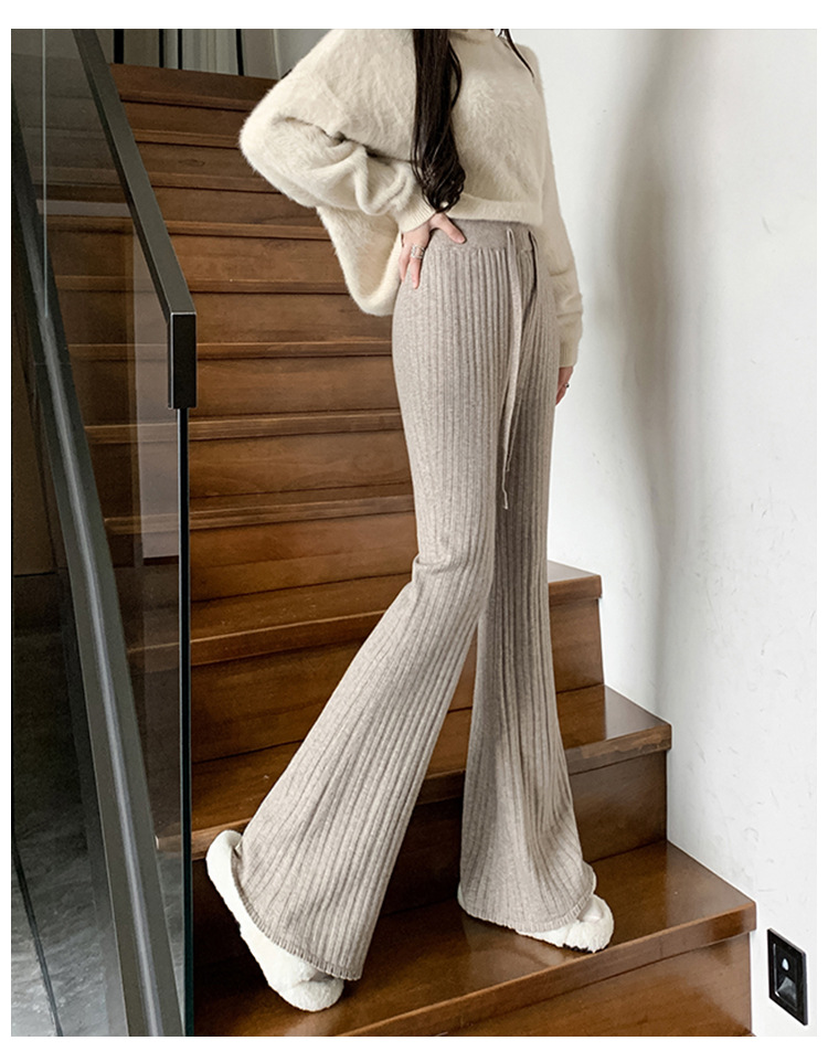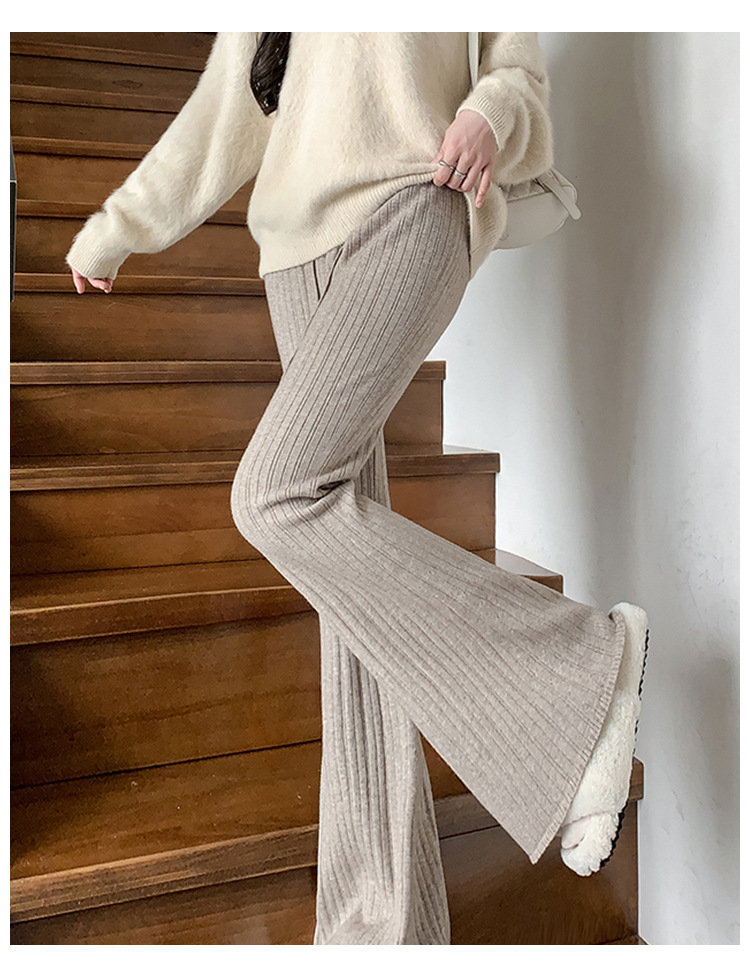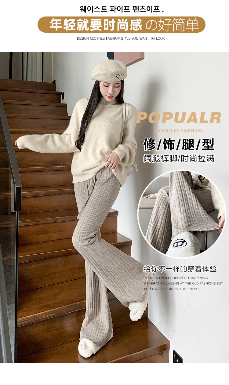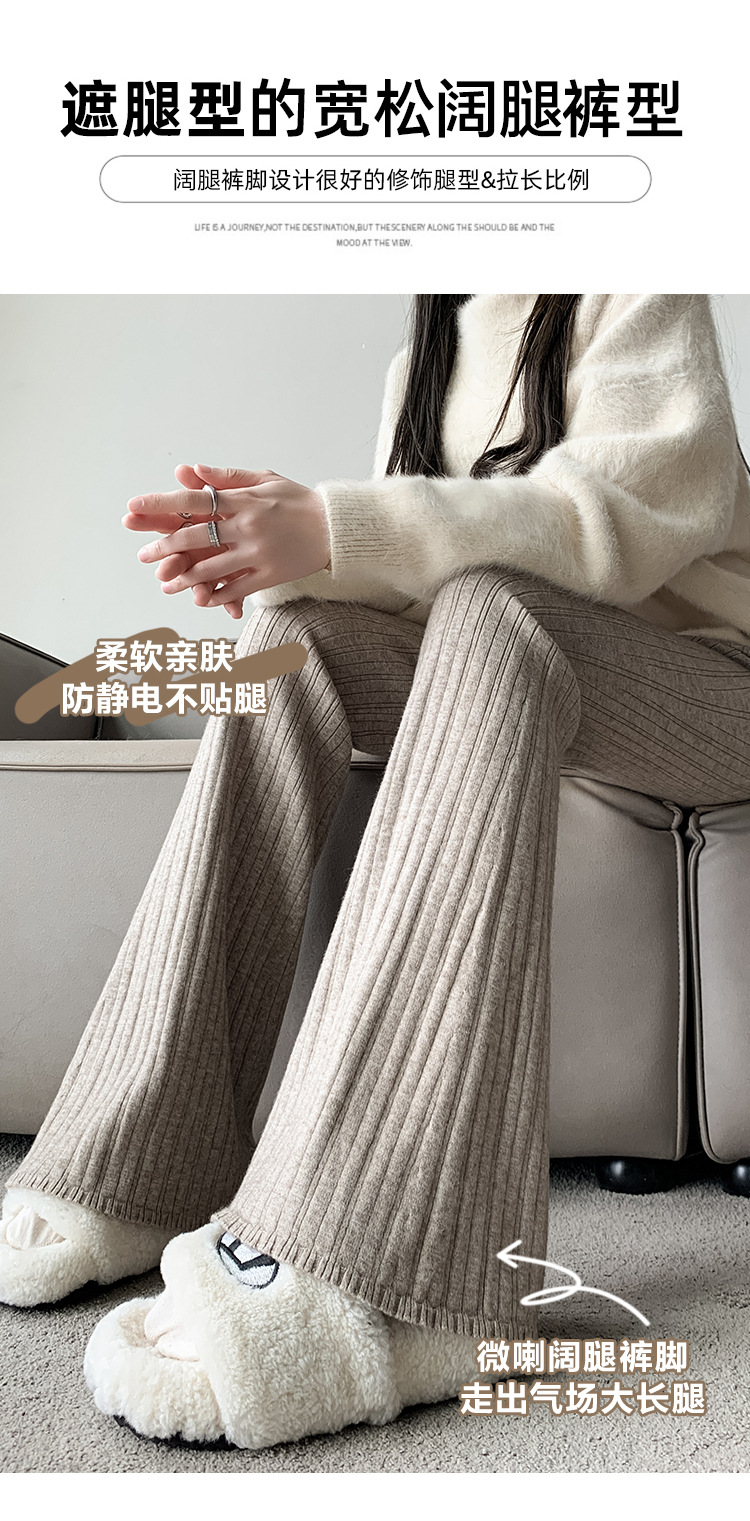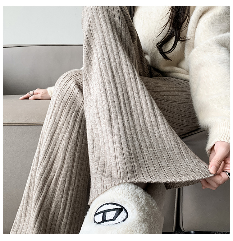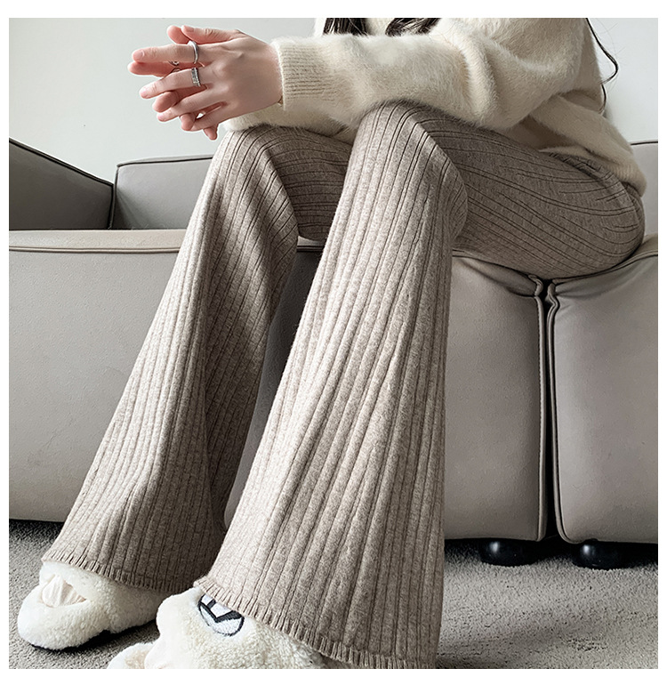 수직 구덩이 니트 마이크로 플레어 바닥 바지 여자 캐주얼 올 매치 와이드 레그 바지 가을과 겨울 두꺼운 캐시미어 말굽 바지스토어 가기